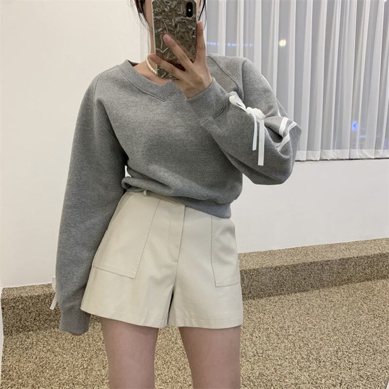 2023年冬新作 レトロ レイジー風 合わせやすい リボン 長袖 トレーナー
