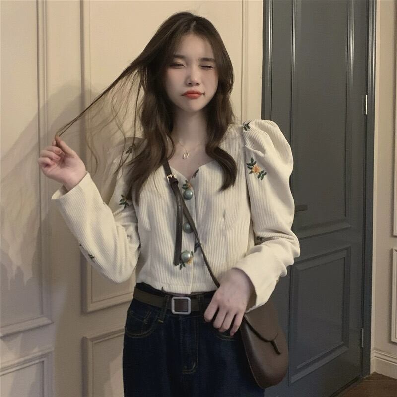 2023年冬新作 レトロ 合わせやすい ゆったり 長袖 刺繍シャツ/ブラウス