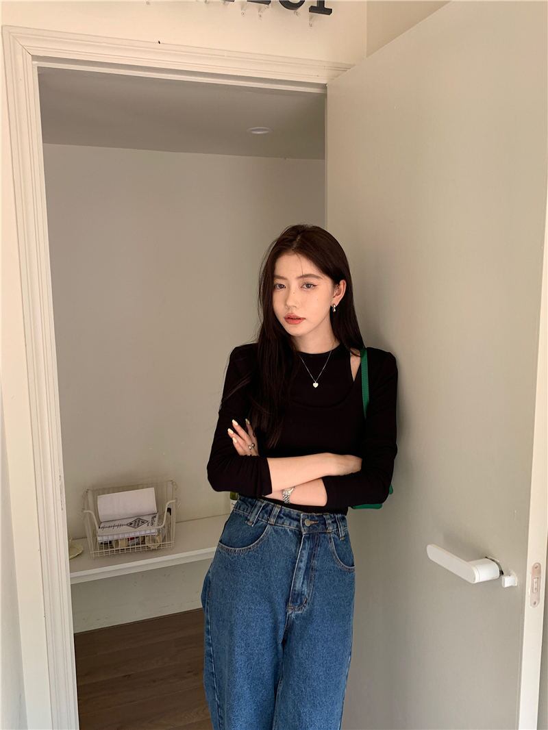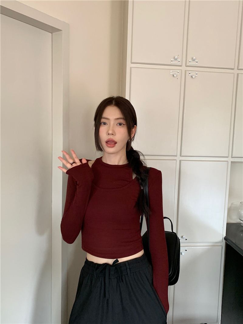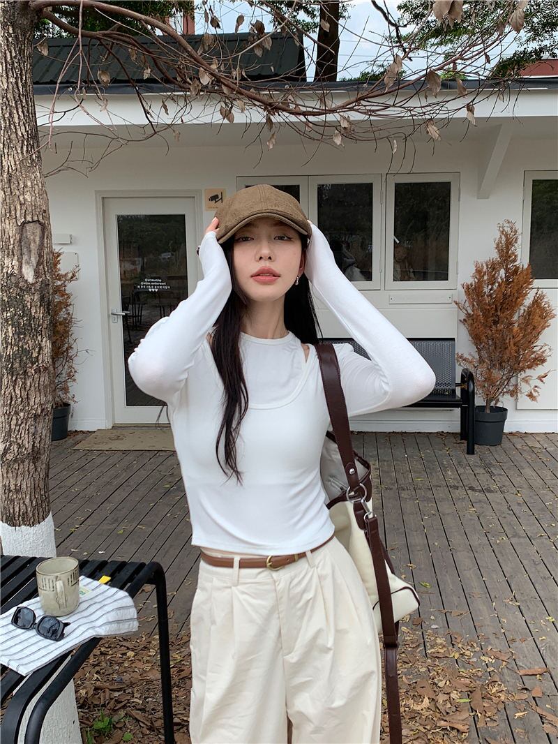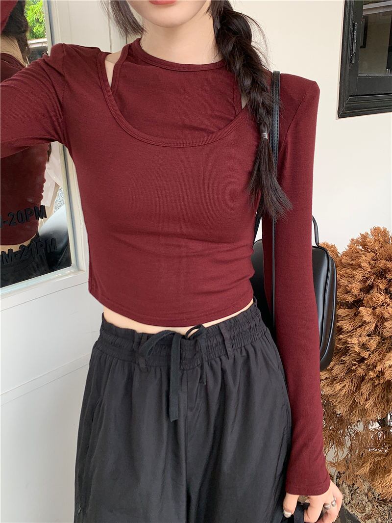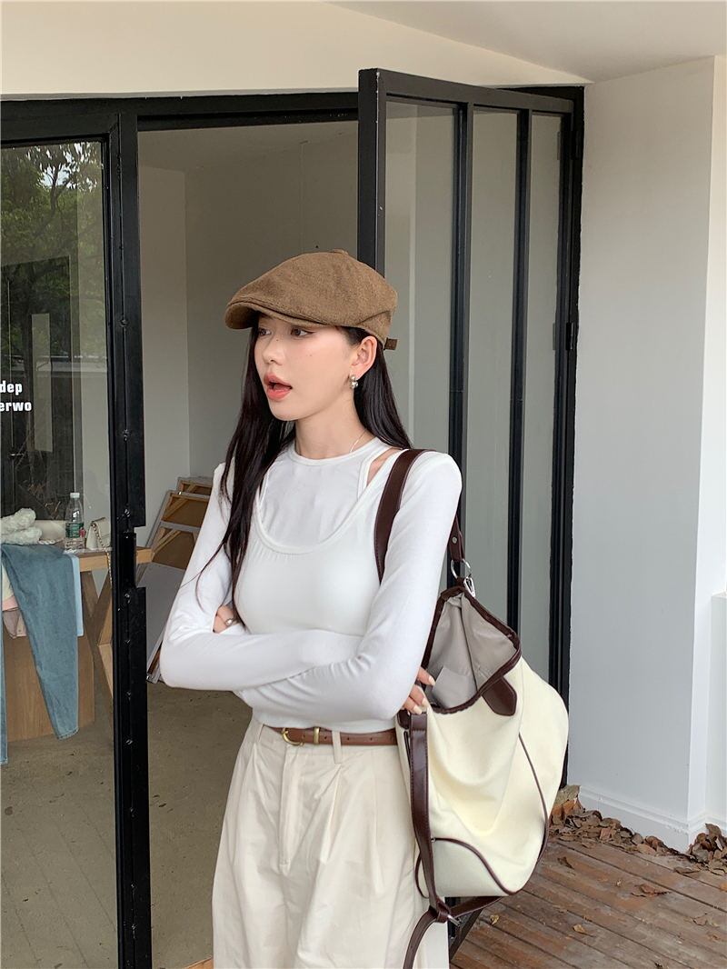 2023年冬新作 レトロ レイジー風 合わせやすい 長袖 偽2枚 シャツ トップス