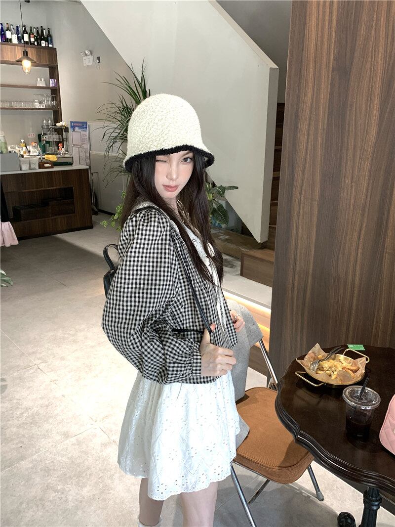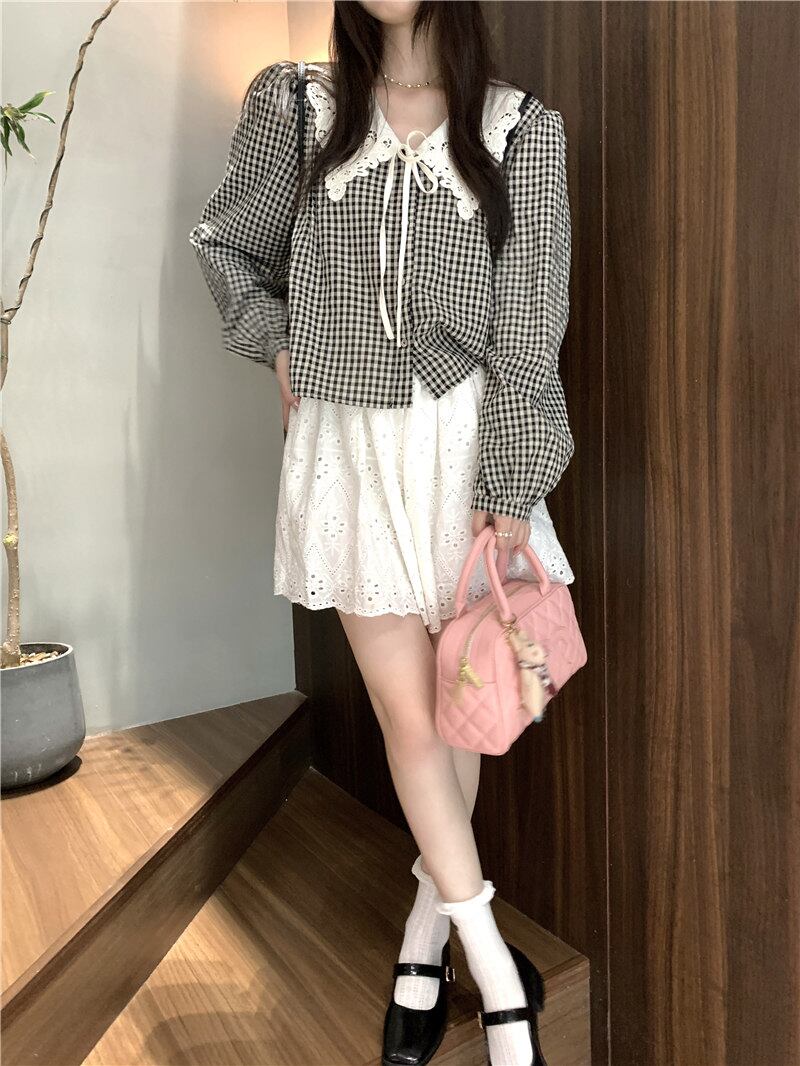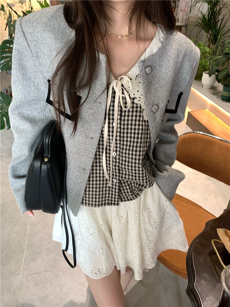 2023年冬新作 レトロ 合わせやすい ゆったり チェック柄 デコレーション シャツ/ブラウス