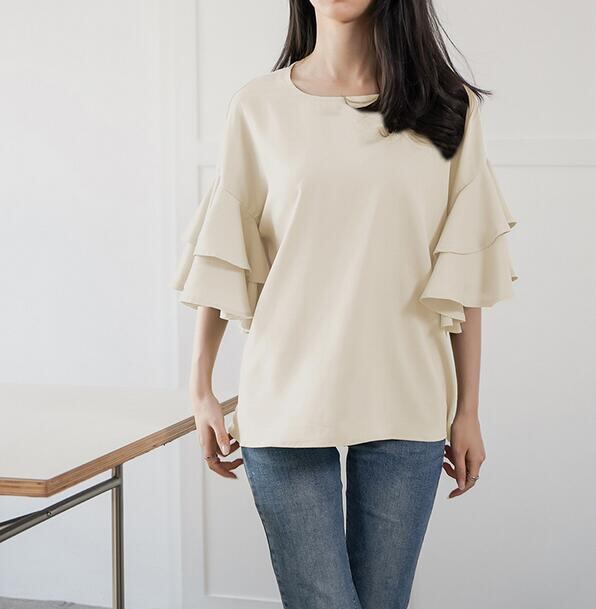 フリル袖Tシャツブラウス レディースファッション 大人 トップス