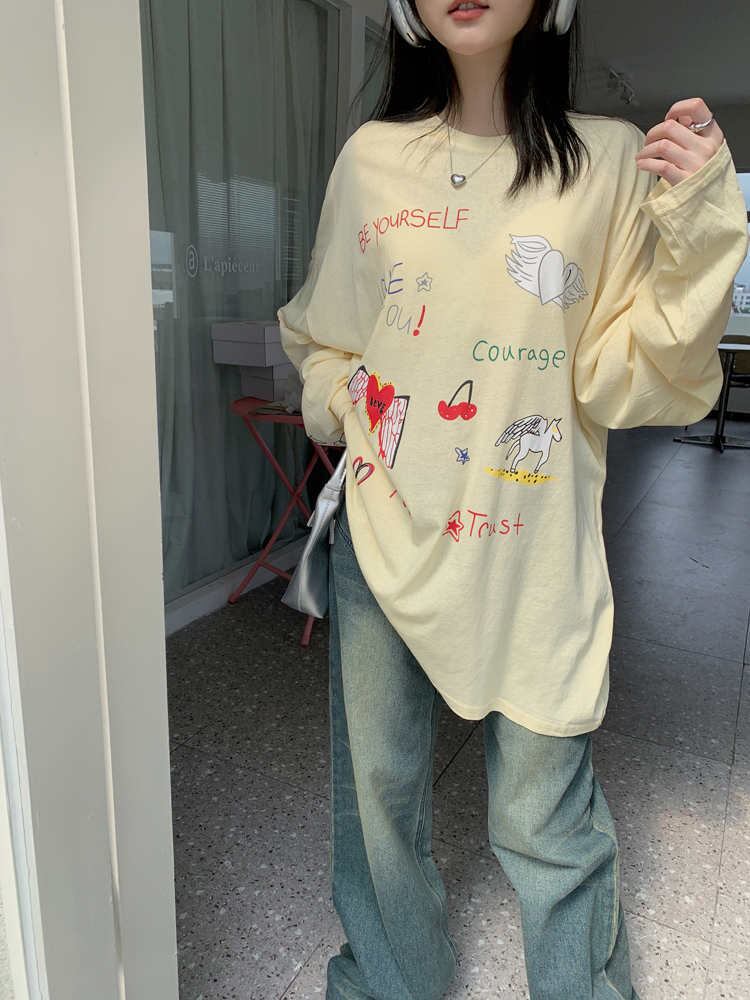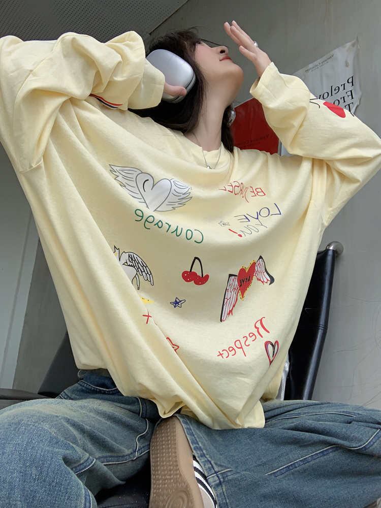 2023夏INS新作★カジュアル 韓国風 気質 デザイン性 シンプル ゆったり 着心地抜群 長袖Tシャツ