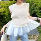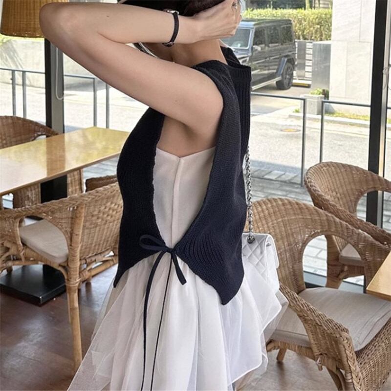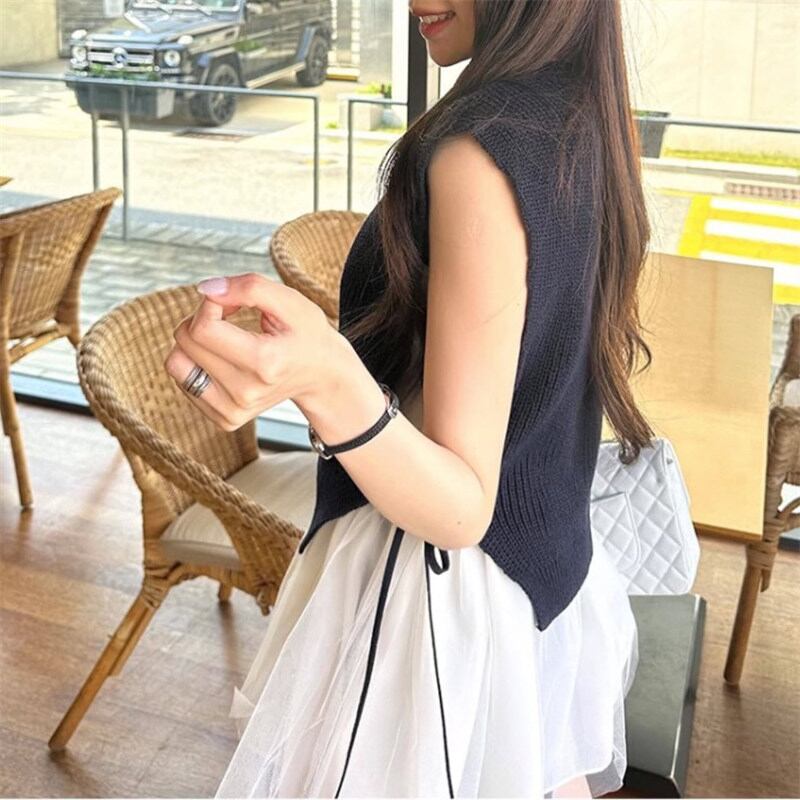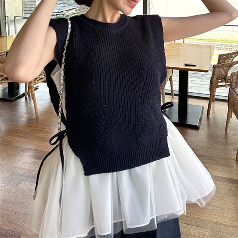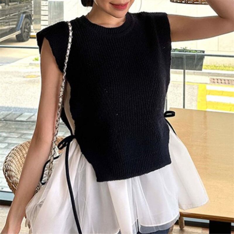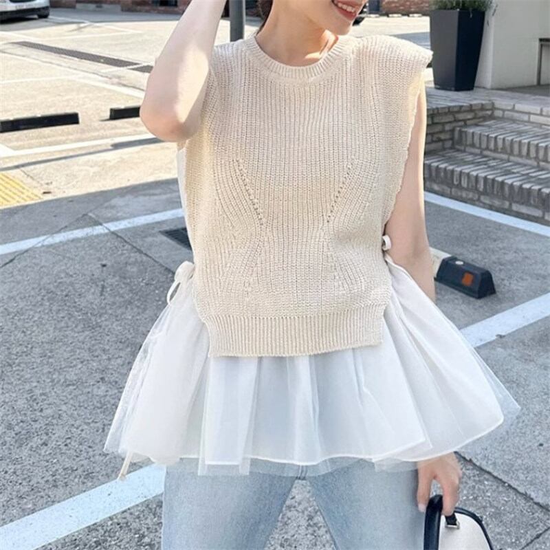 2023夏INS新作★カジュアル 韓国系 気質 ヘムチュール フレアレイヤード ニットタンクトップ