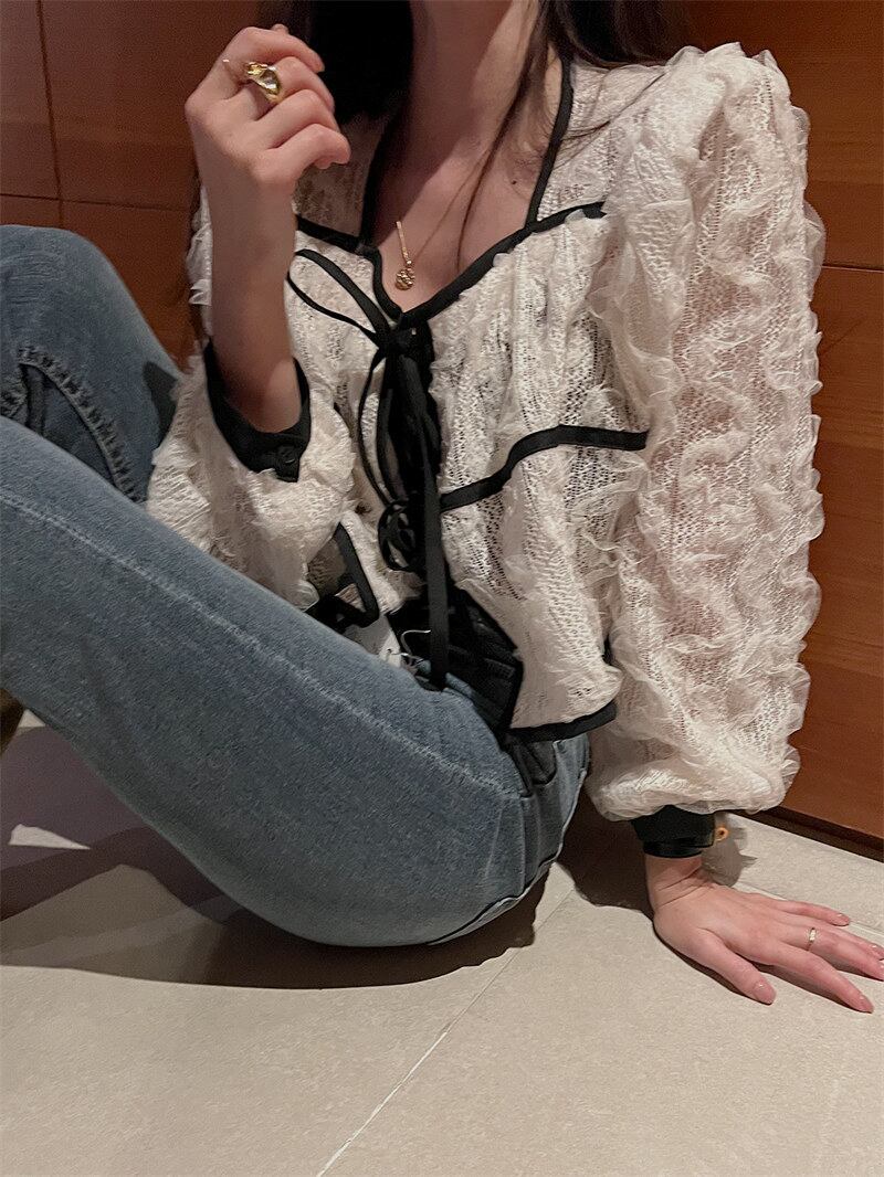 2023夏INS新作★カジュアル 韓国系 気質 レース ブラウス/シャツ