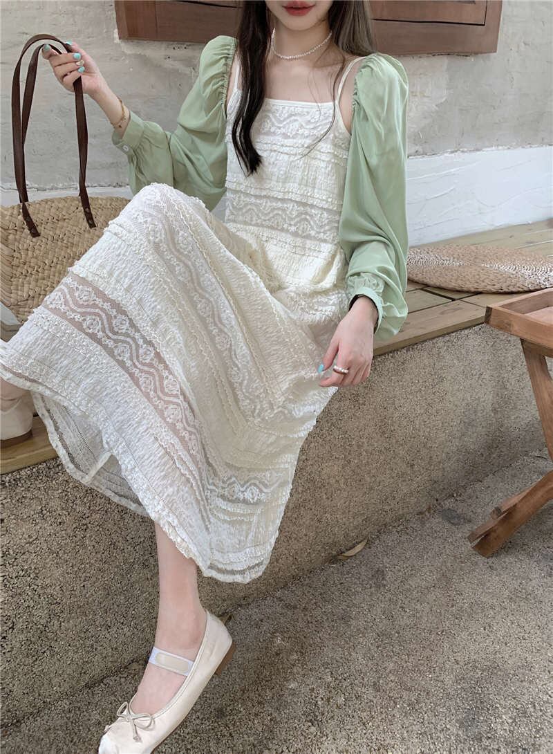 2023夏INS新作★カジュアル フランス風 気質 レトロ シンプル デザイン性抜群 ブラウス+ワンピース