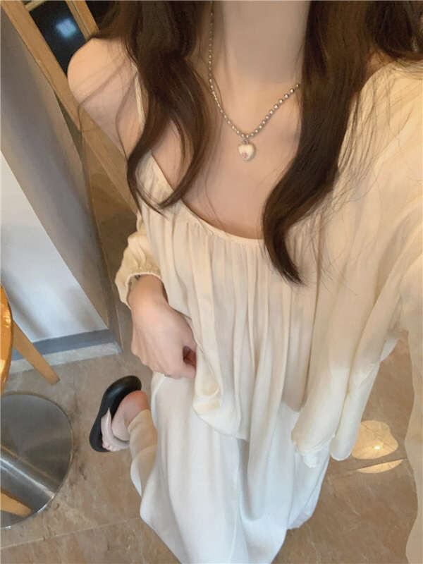 2023夏INS新作★カジュアル 韓国系 気質 レトロ シンプル デザイン性抜群 ブラウス+ワンピース
