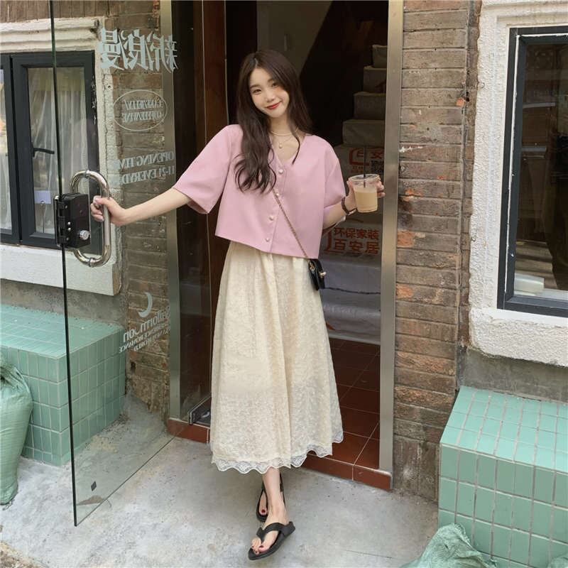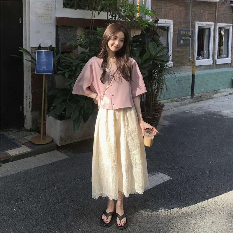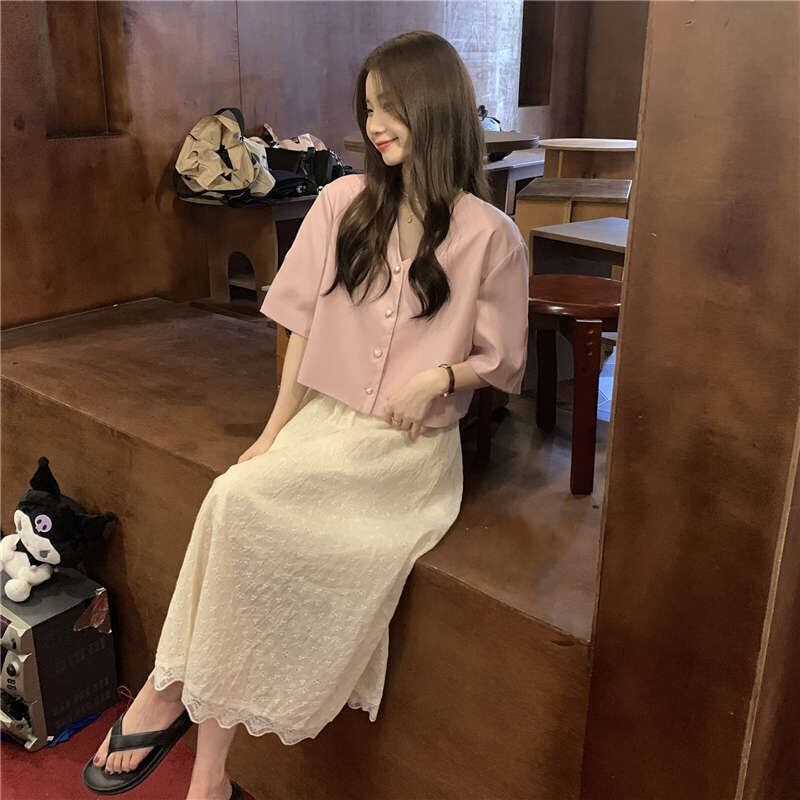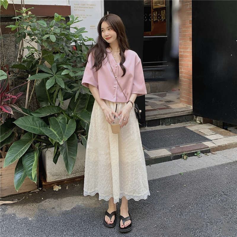 2023夏INS新作★カジュアル 韓国系 気質 おしゃれ 可愛い系 デザイン性抜群 ブラウス+スカート