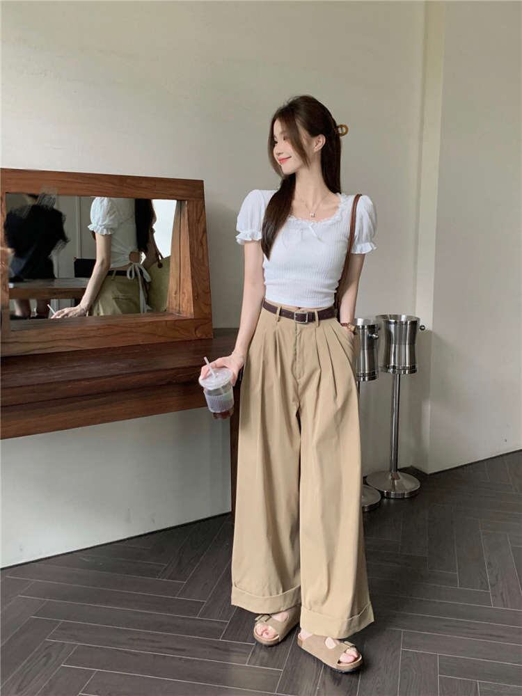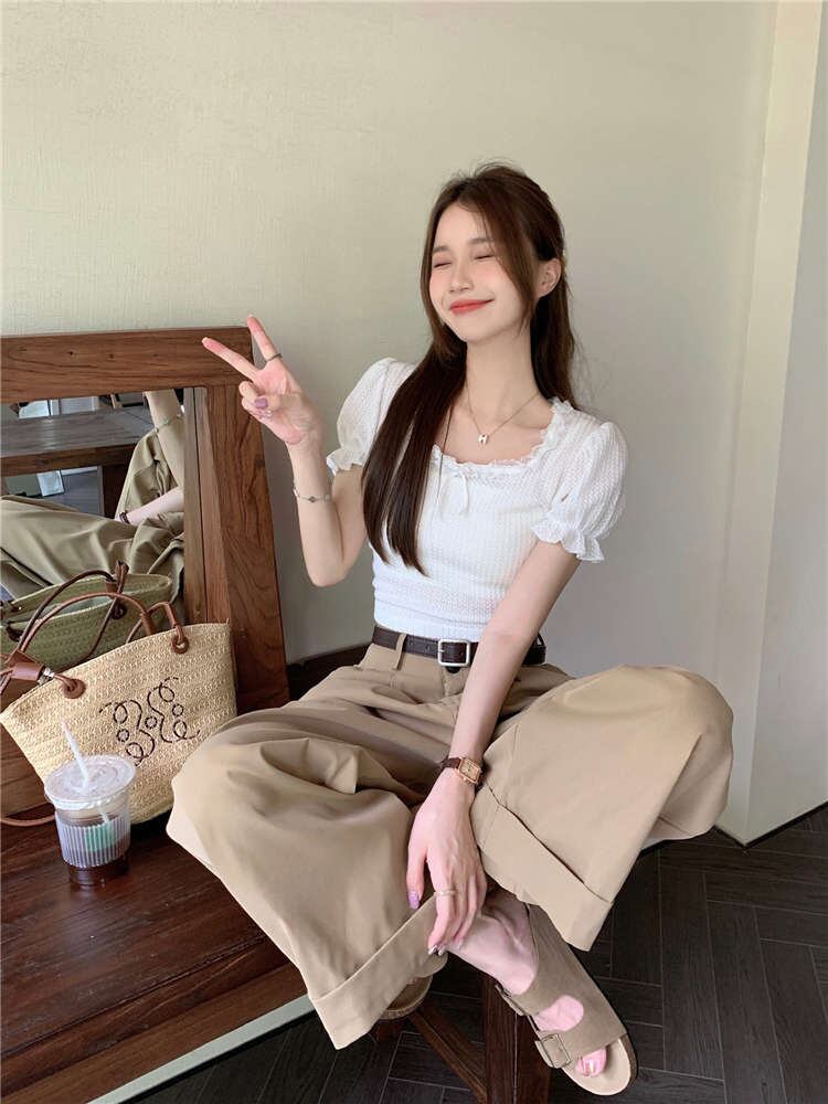2023夏INS新作★カジュアル フランス系 気質 おしゃれ エレガント デザイン性抜群 ブラウス+ズボン
