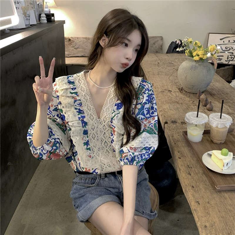2023夏INS新作★カジュアル 韓国系 気質 おしゃれ レトロ エレガント シャツ/ブラウス