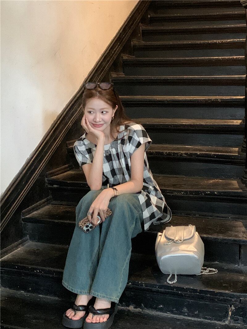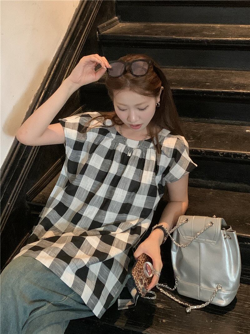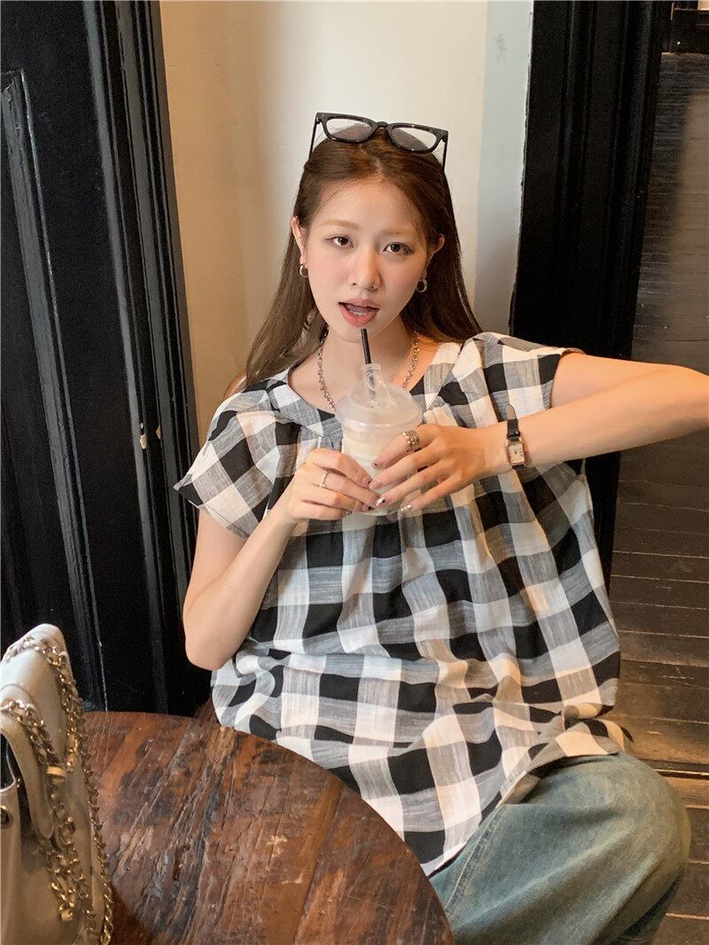 2023夏INS新作★カジュアル 韓国系 気質 おしゃれ チェック柄 シャツ/ブラウス