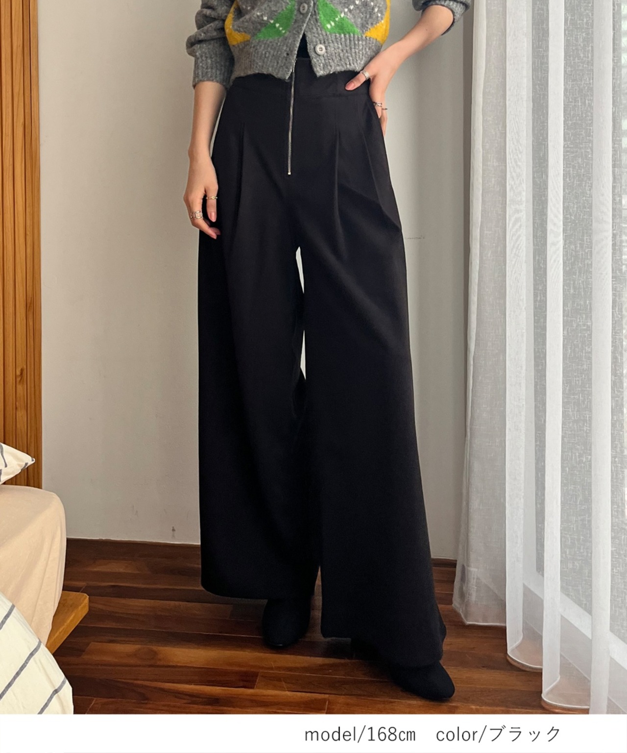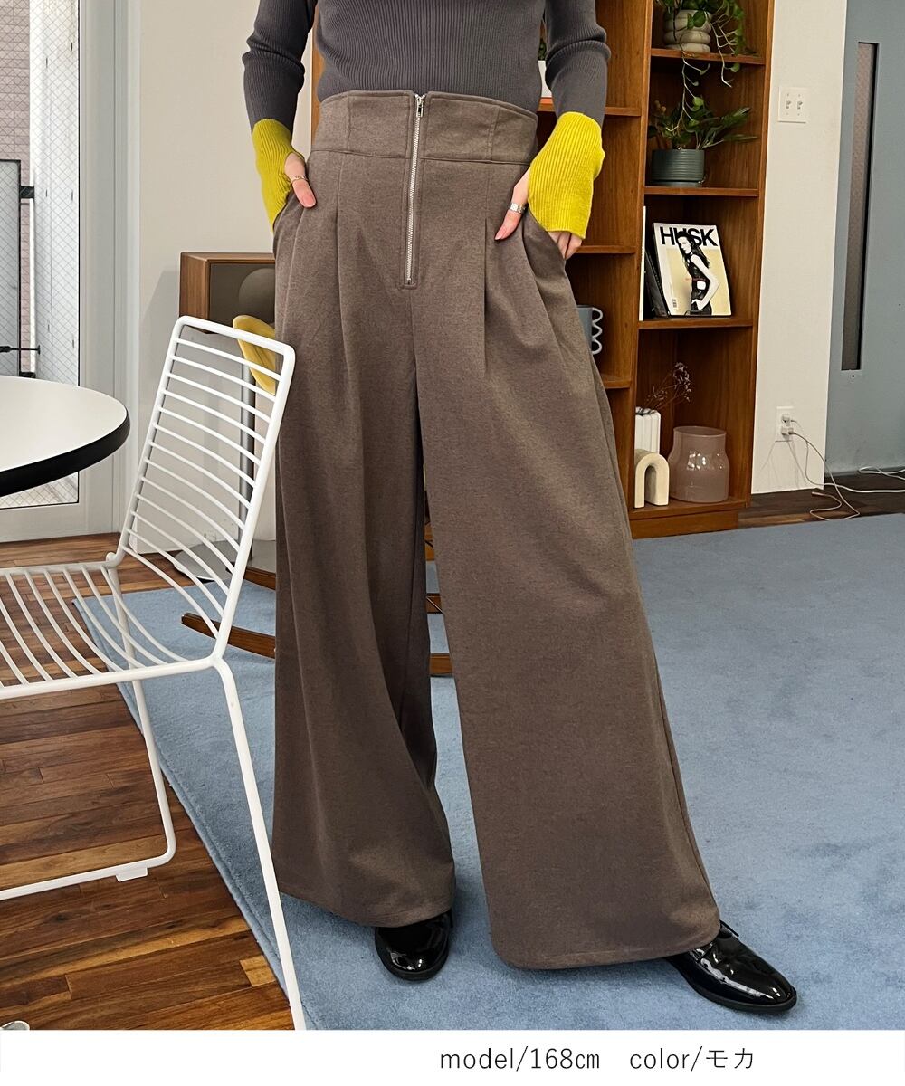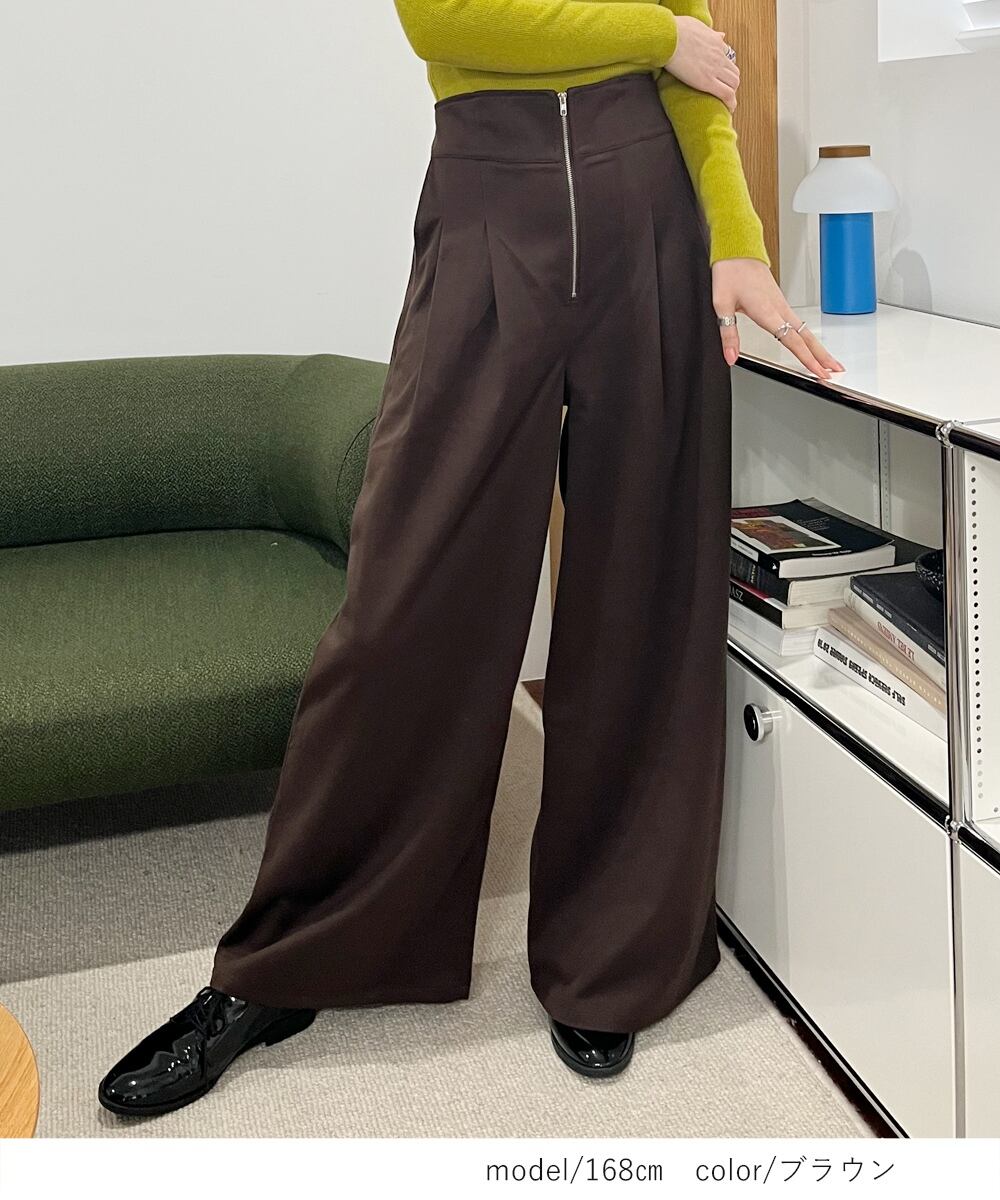 【2025新作商品♪】フロントジップハイウエストワイドパンツ