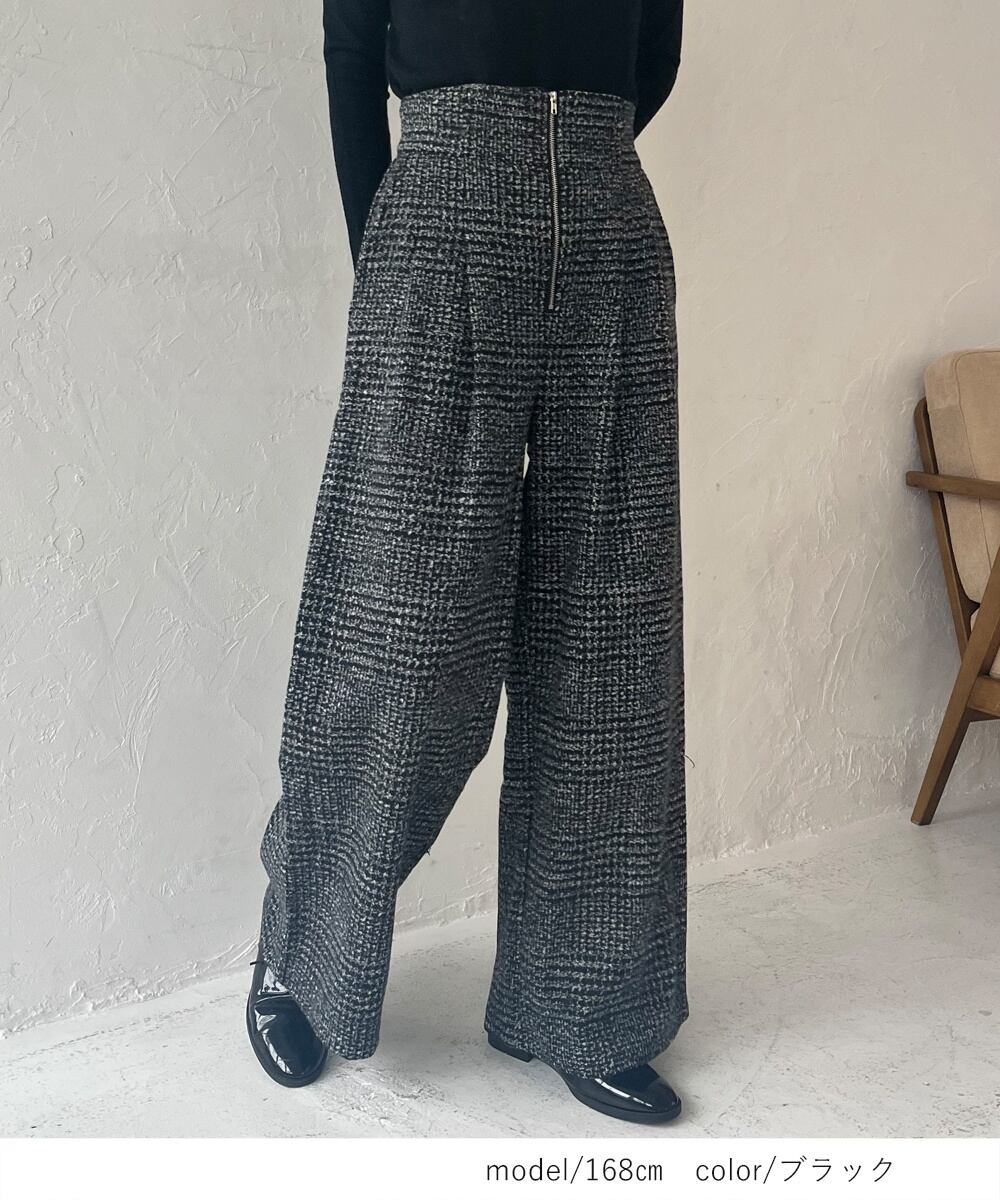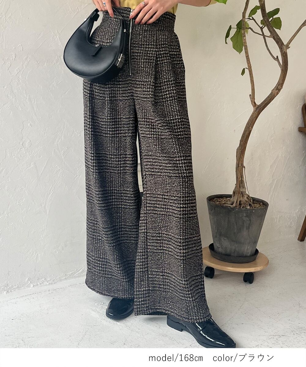 再入荷!【2025新作商品♪】グレンチェック柄ハイウエストワイドパンツ