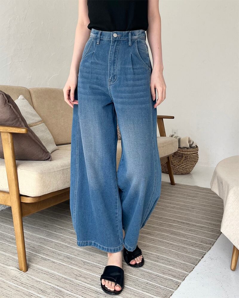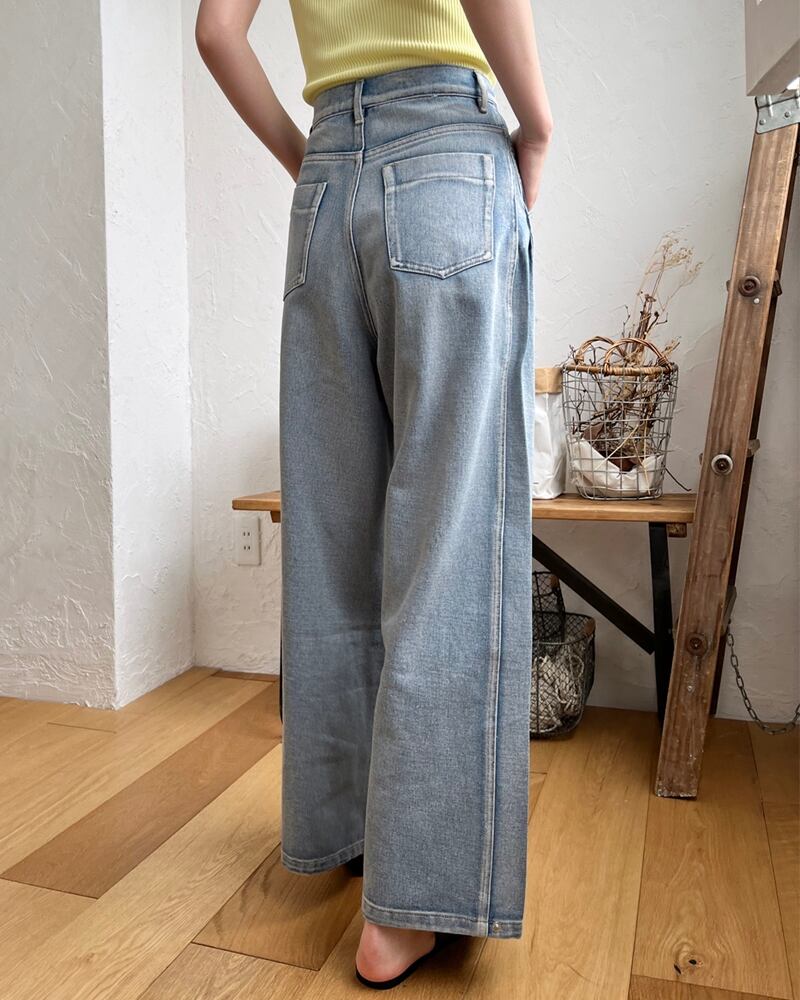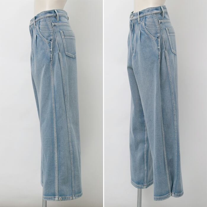 【2024新作商品♪】サイド切替タックデニムパンツ