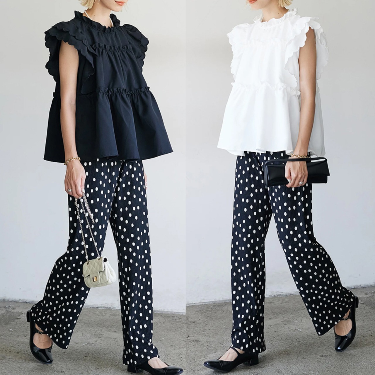 初回送料無料 春夏新作レディースファッション カジュアル ノースリーブ 上着 水玉模様 ズボン