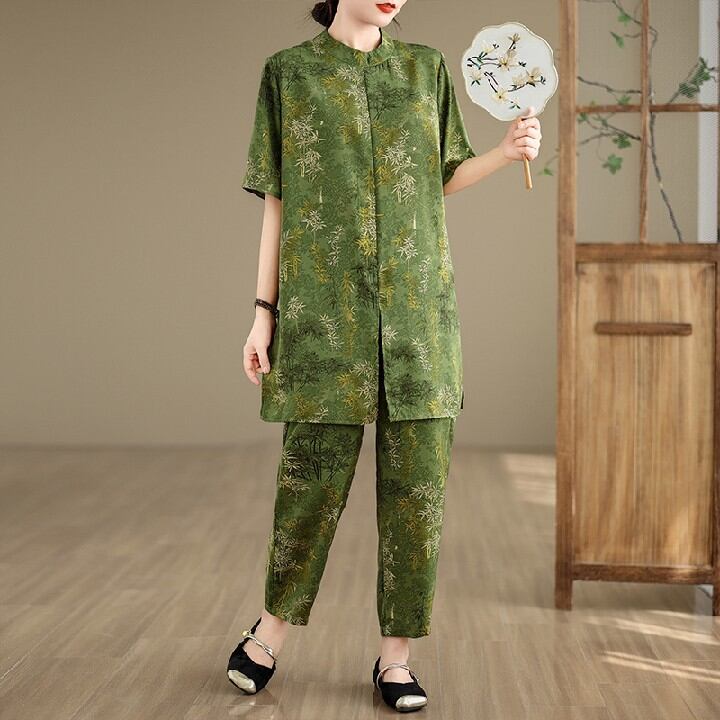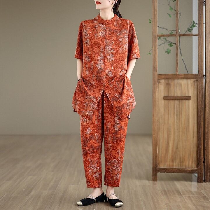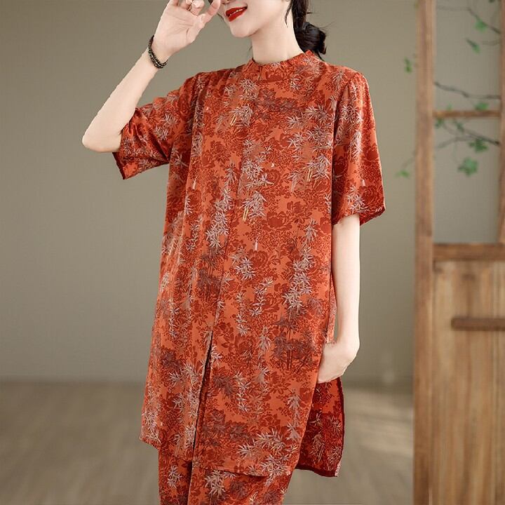 初回送料無料 夏レディースファッション カジュアル ロングシャツ ズボン 上下 2点セット