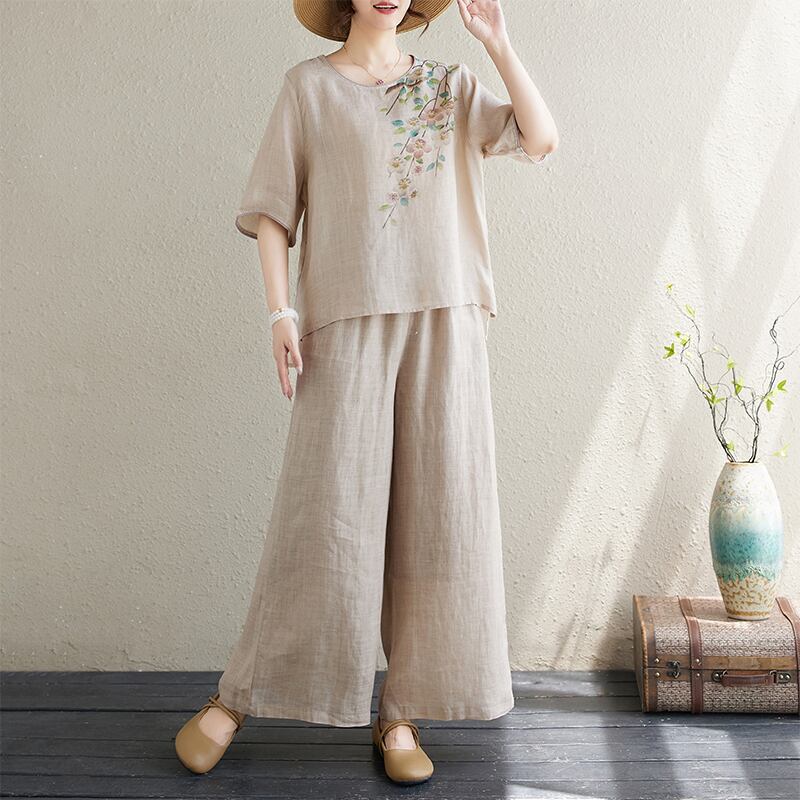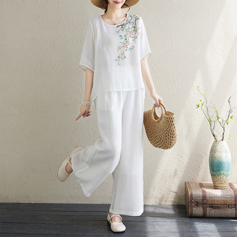 初回送料無料 夏レディースファッション プリント カジュアル トップス ズボン 上下2点セット