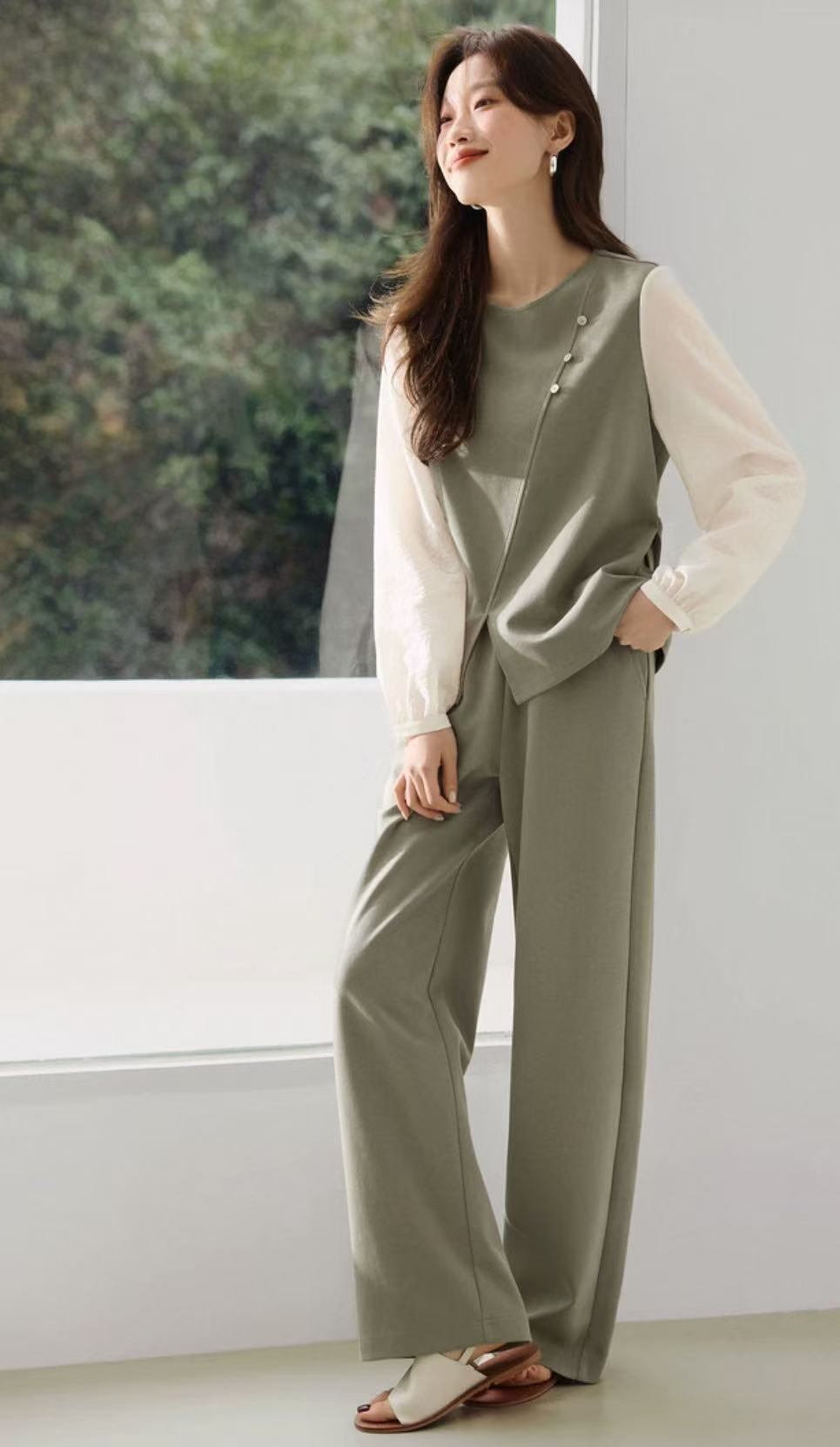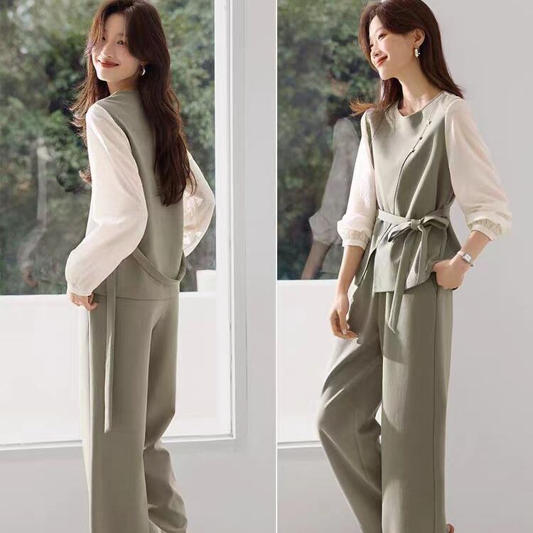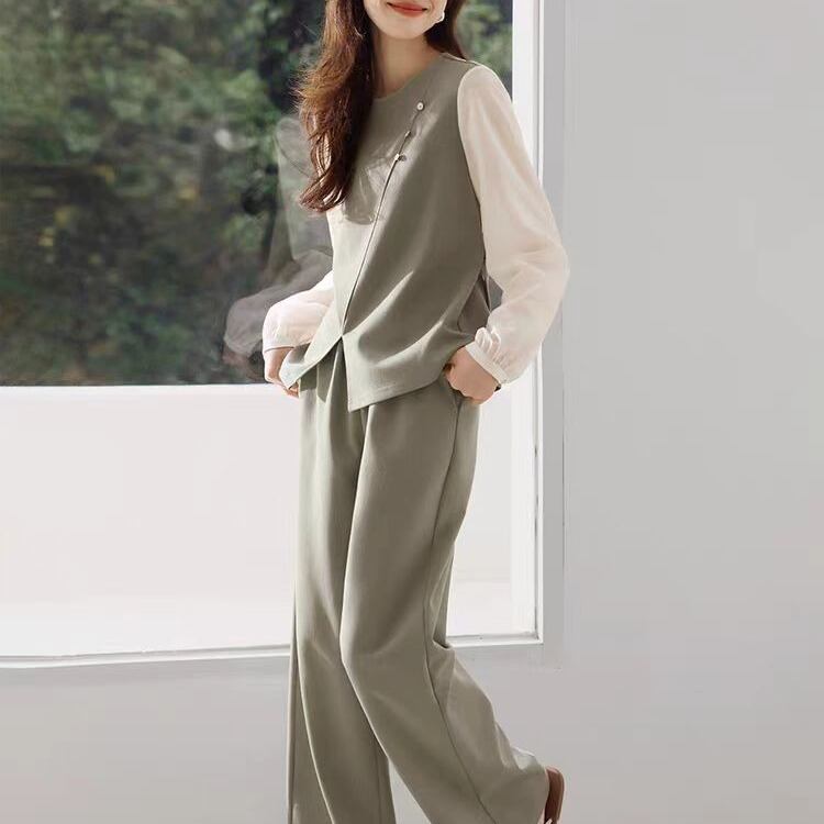 初回送料無料 新作レディースファッション パッチワークトップス カジュアルズボン 上下2点セット