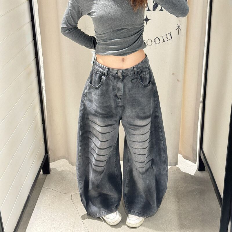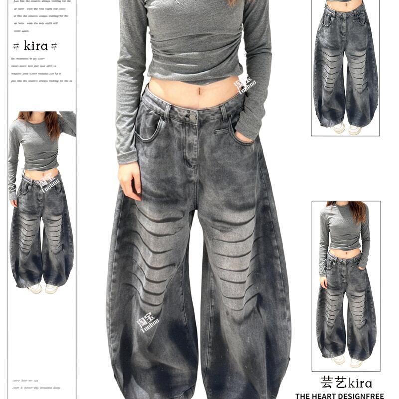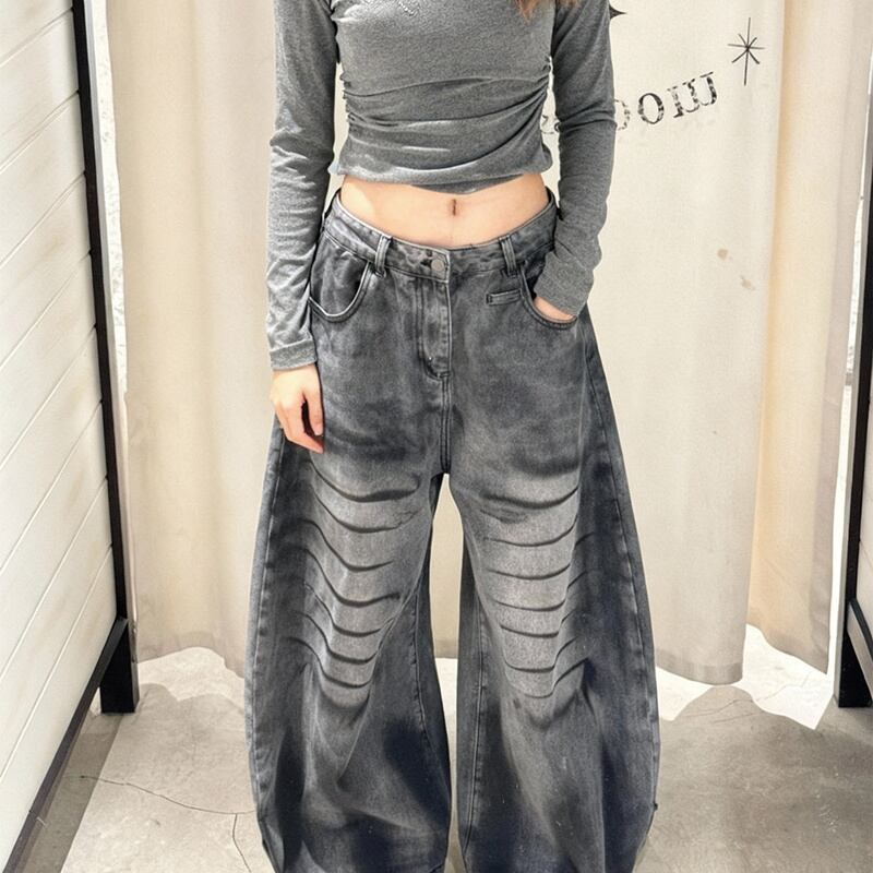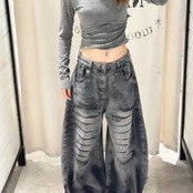 ジーンズ レディース ダメージ加工 カーブパンツ ワイド デニム Y2K ストリート