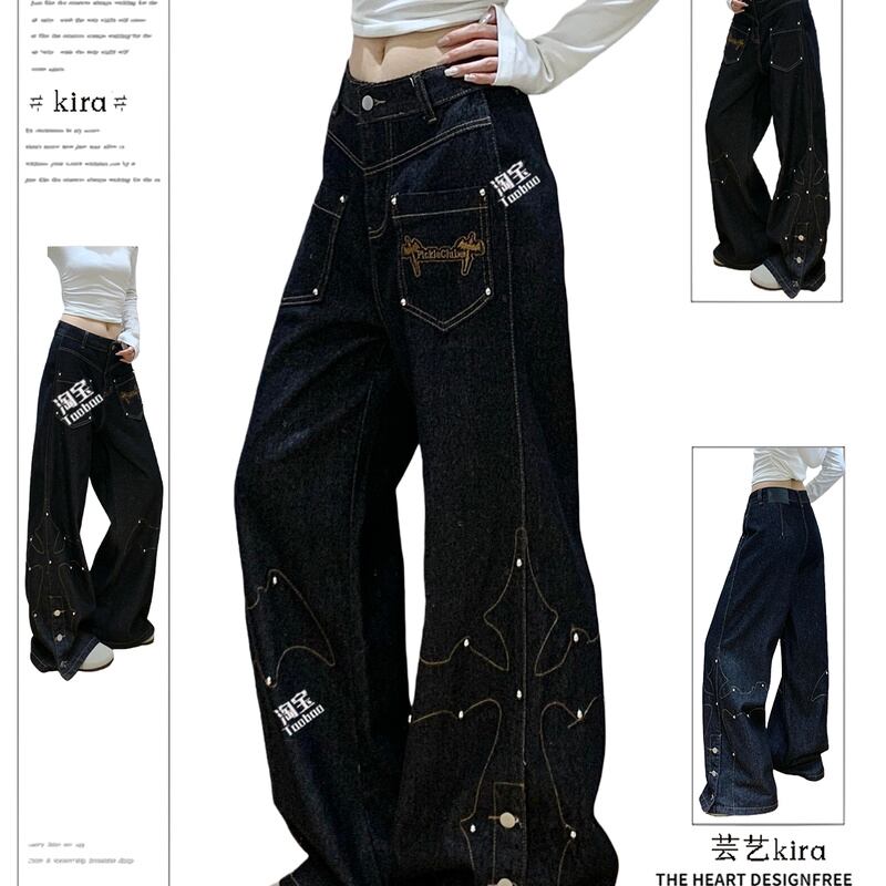 ジーンズ レディース 変形 デザイン ワイドパンツ ハイウエスト ストリート デニム