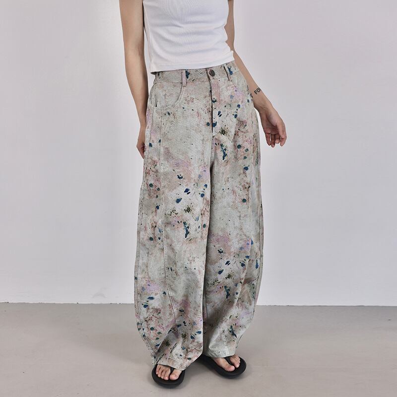 初回送料無料 カジュアルゆったりプリントデニムパンツ レディースファッション人気トレンド