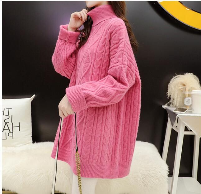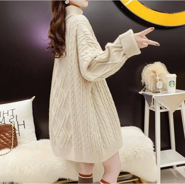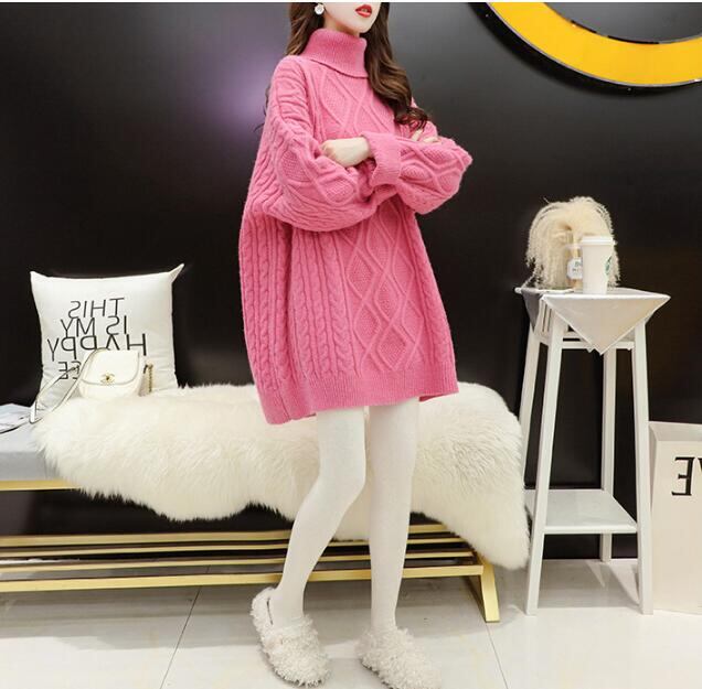 ワンピース長袖セーター女性長袖ニットワンピースウールセーター秋冬タートルネック