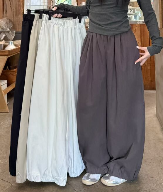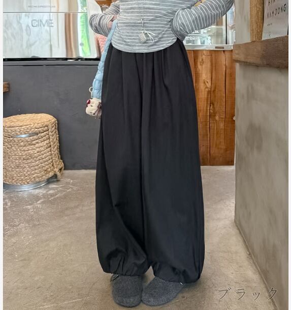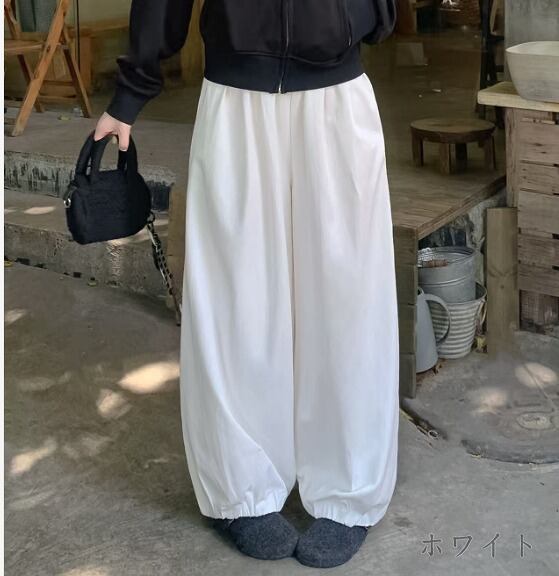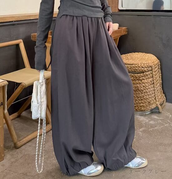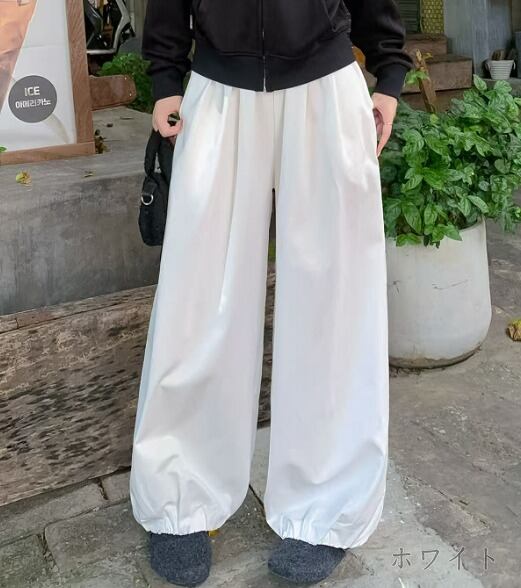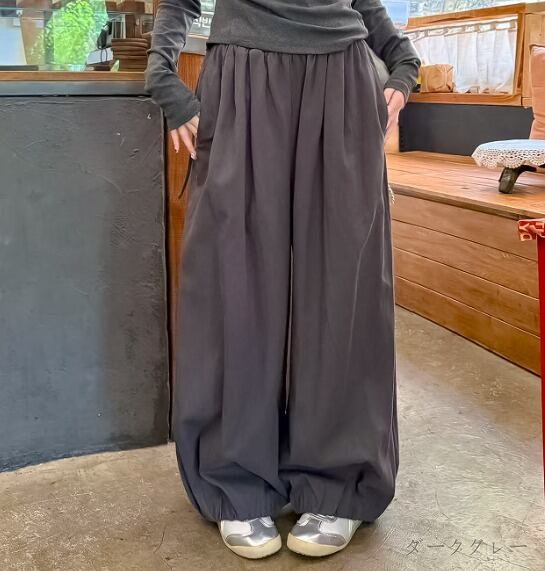 全4色 ワイド バギーパンツ ハイウエスト 切り替え 体型カバー 着痩せ カジュアル