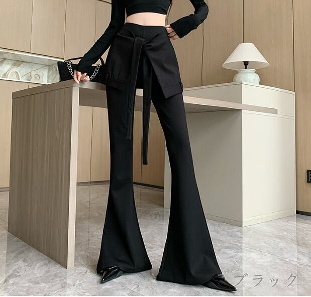 パンツ 切り替え スリム 着痩せ ハイウエスト シンプル