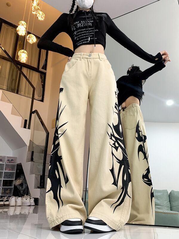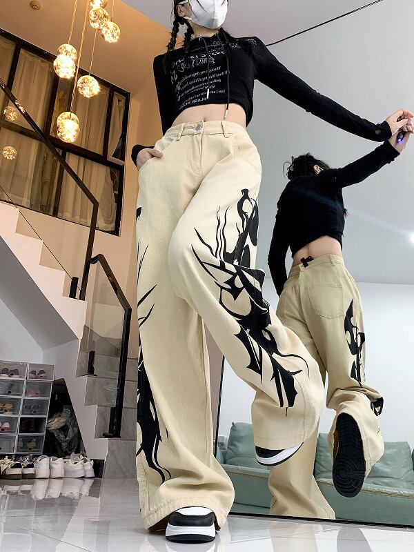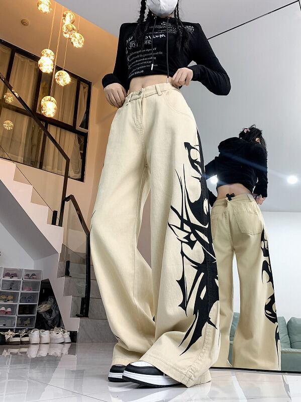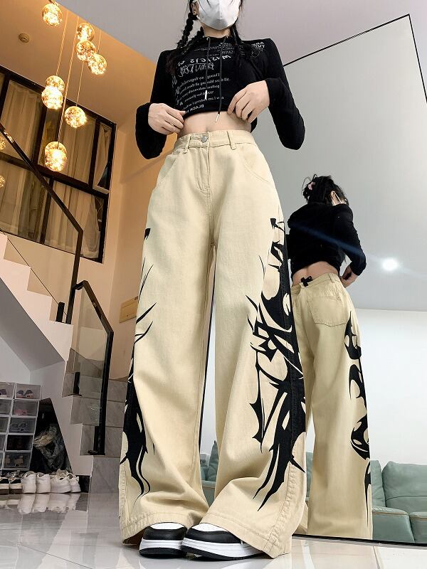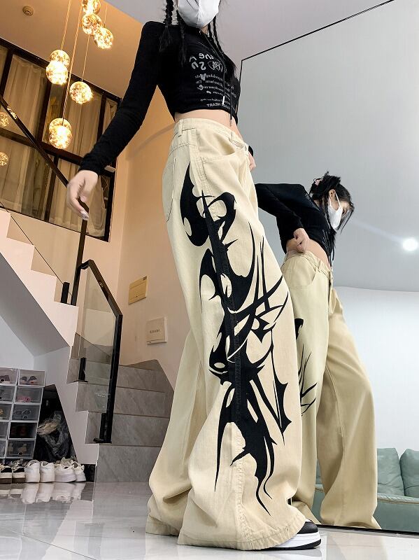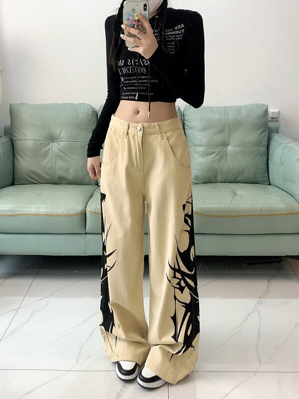 パンツ プリント 切り替え 体型カバー 着痩せ シンプル