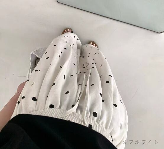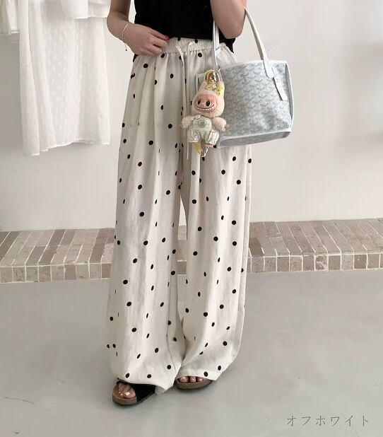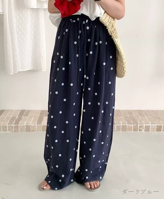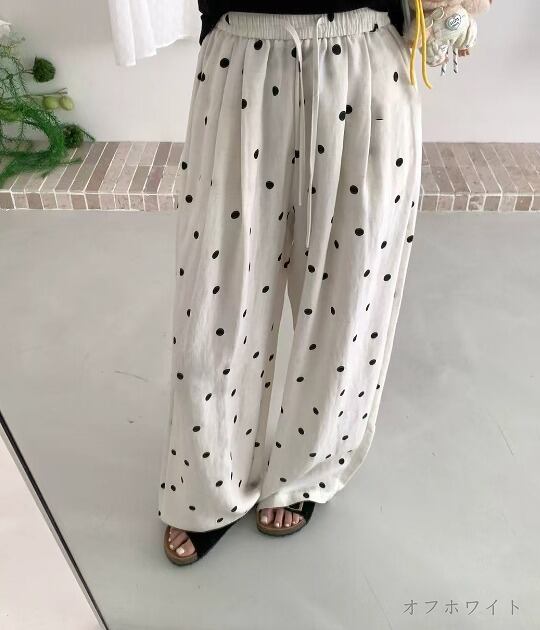 全2色 ワイド バギーパンツ 切り替え バイカラー 体型カバー 着痩せ ドット柄 カジュアル