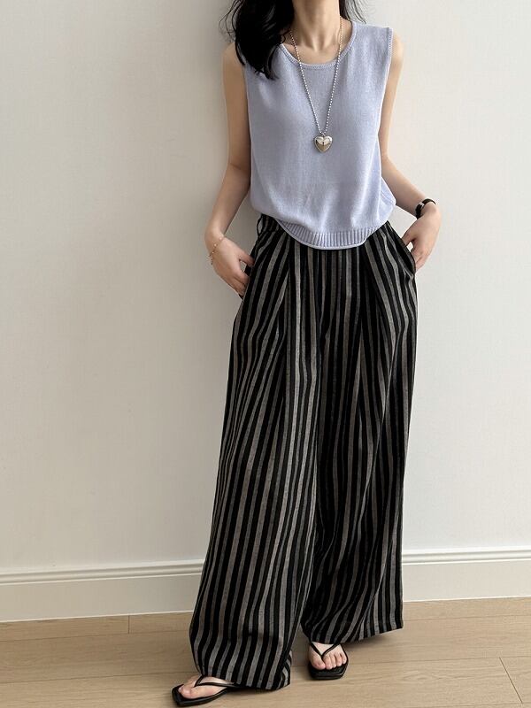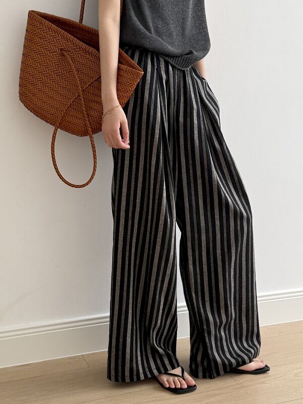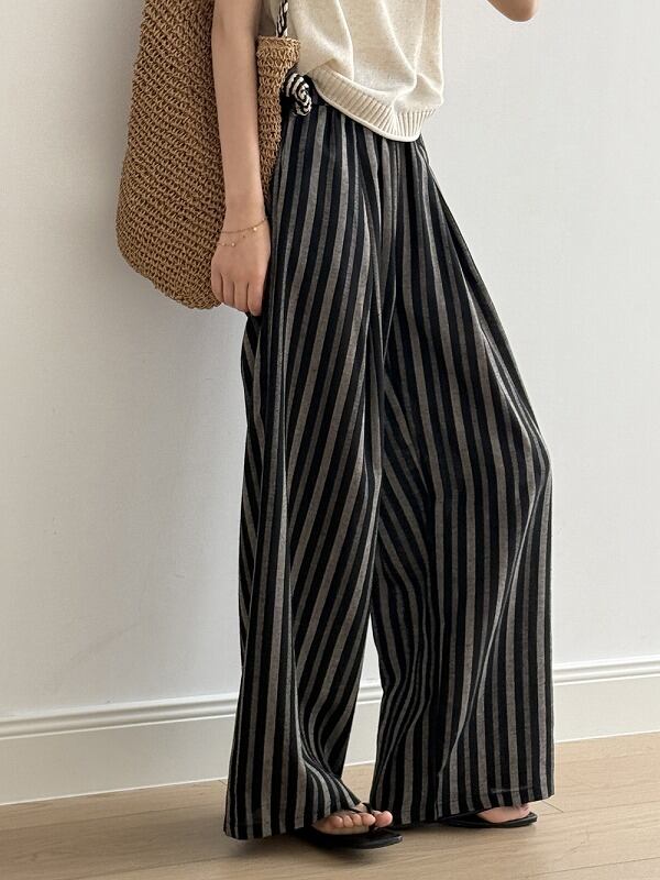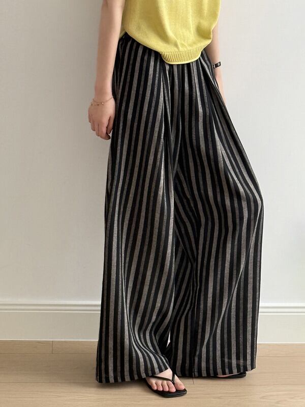 パンツ 切り替え バイカラー 体型カバー 着痩せ ストライプ柄 カジュアル