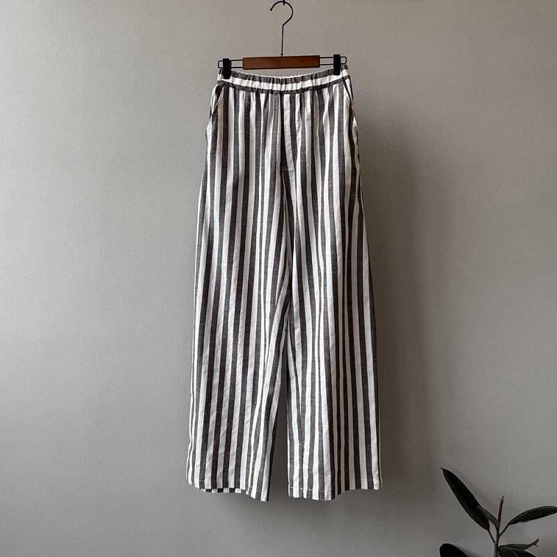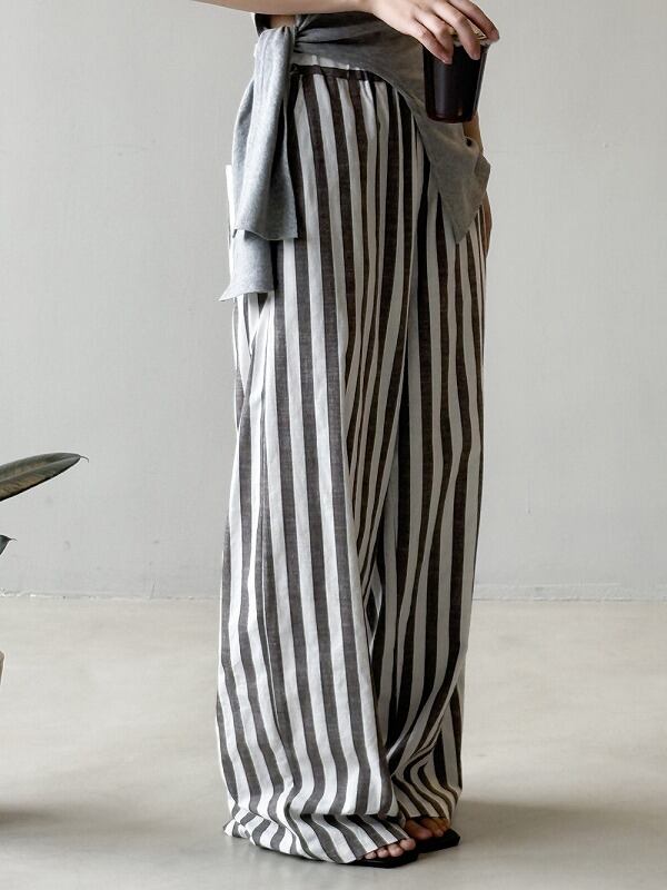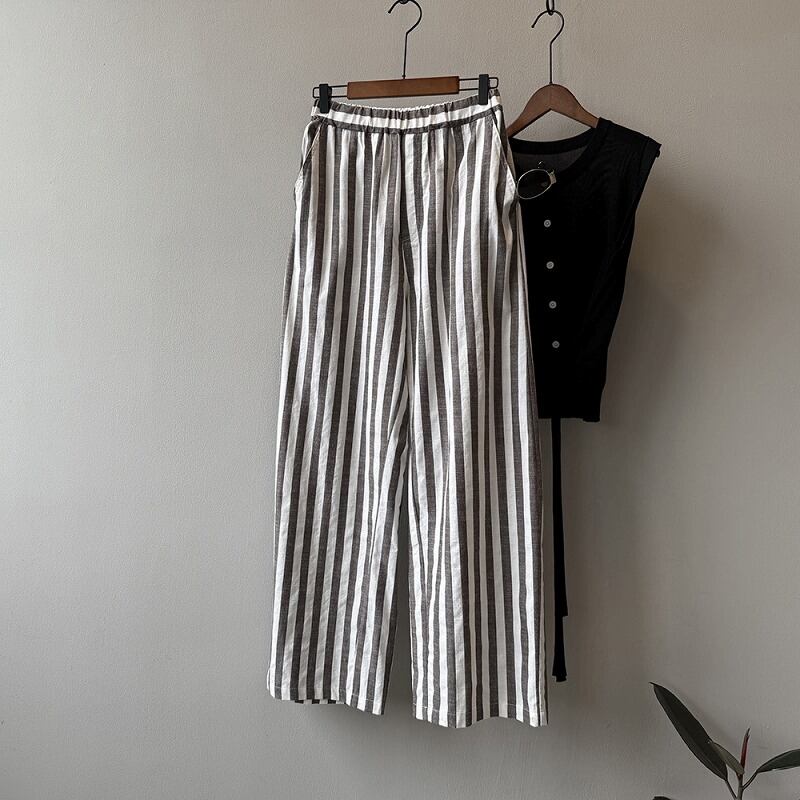 パンツ 切り替え バイカラー 体型カバー 着痩せ ストライプ柄 シンプル カジュアル
