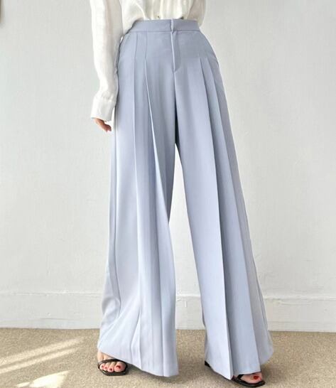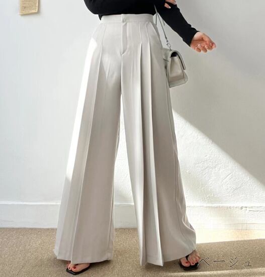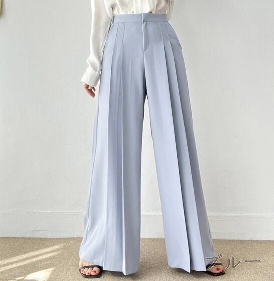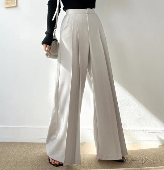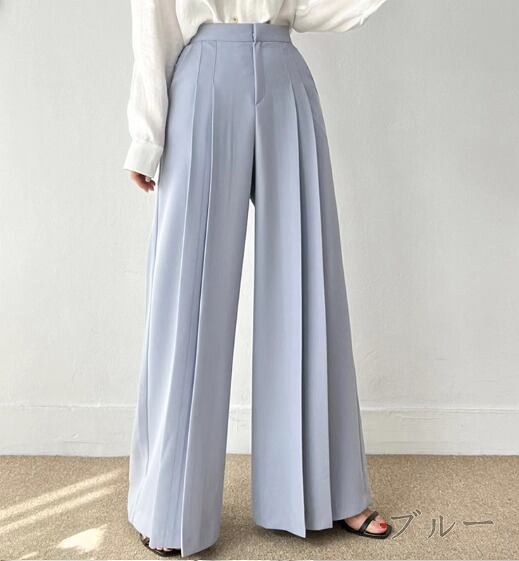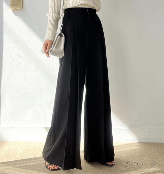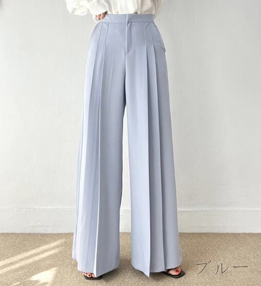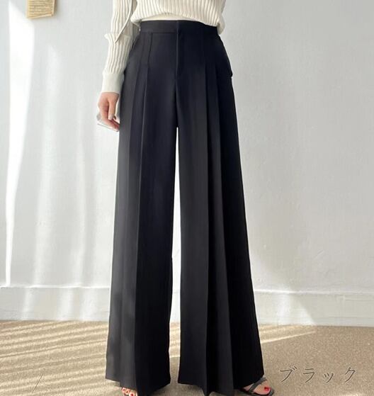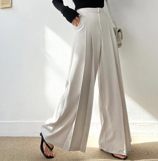 全3色 ワイド バギーパンツ シャーリング 切り替え 体型カバー 着痩せ シンプル