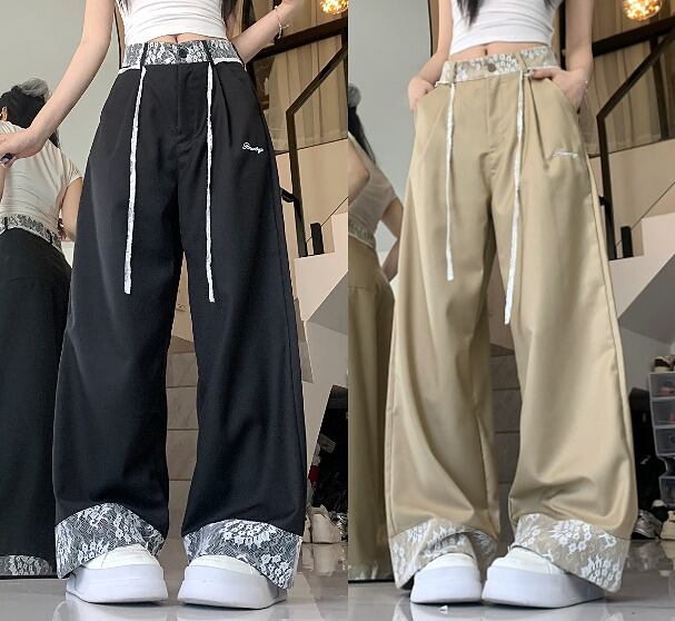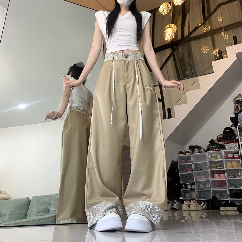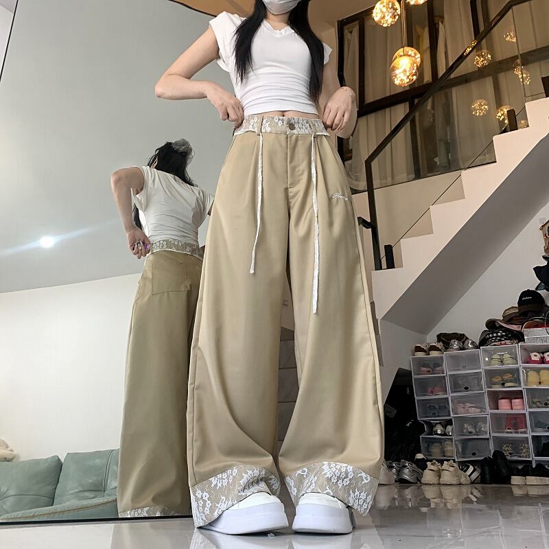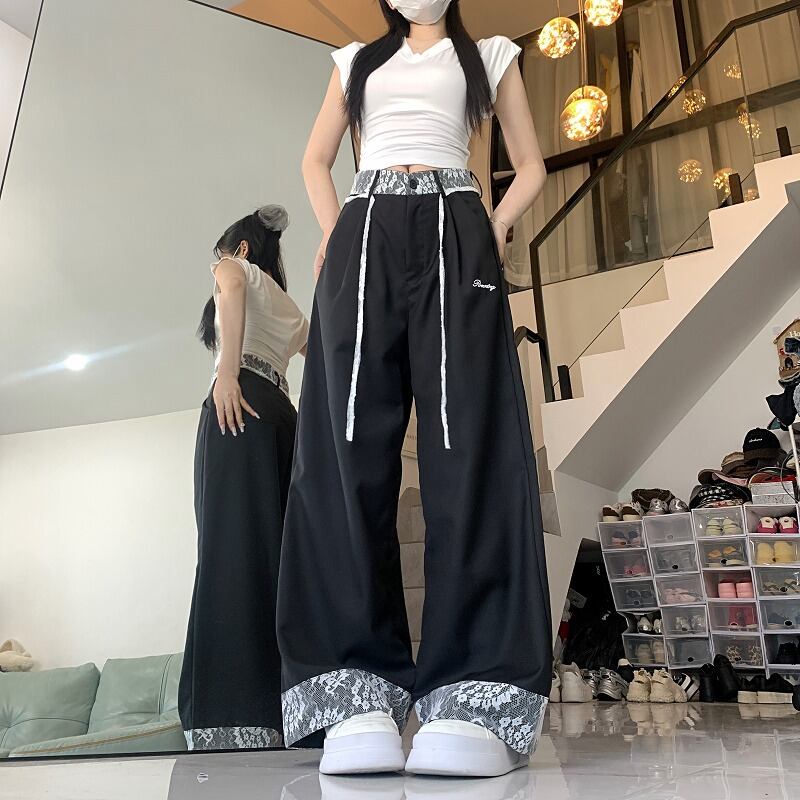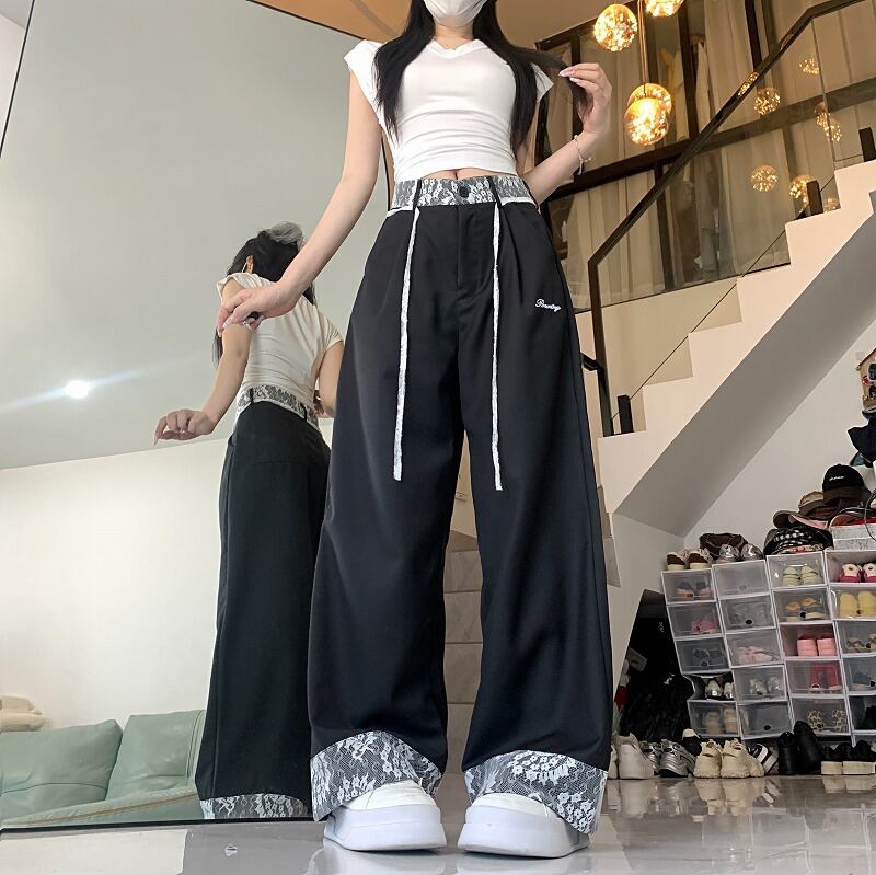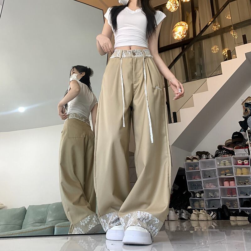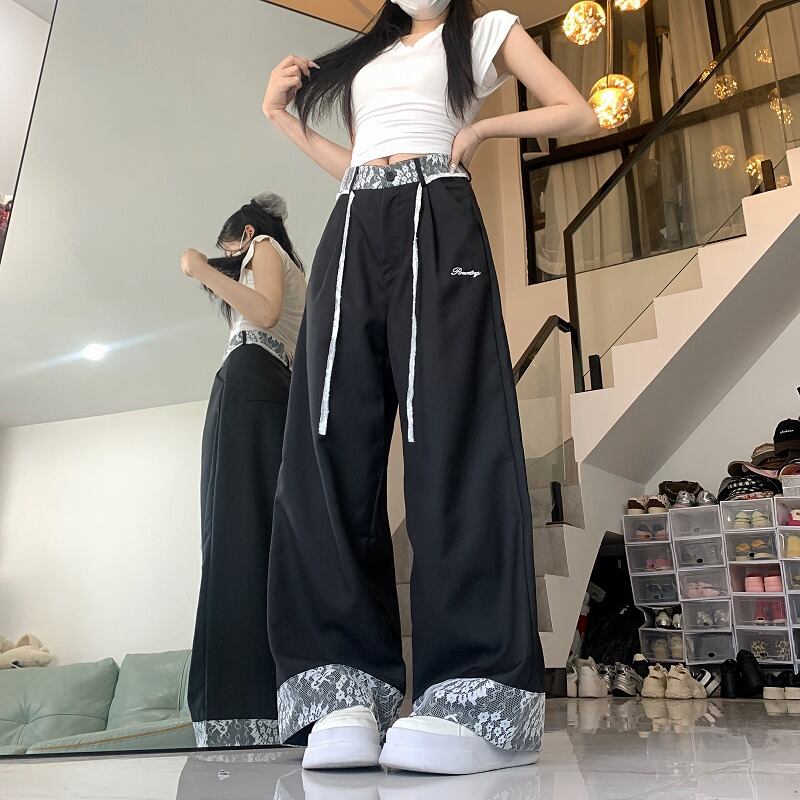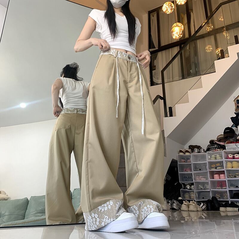 全2色 パンツ 切り替え 体型カバー 着痩せ レース sweet系