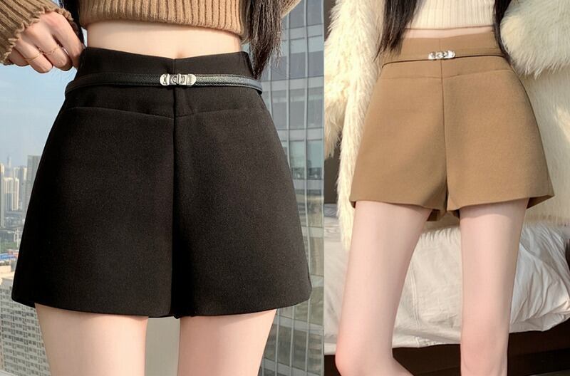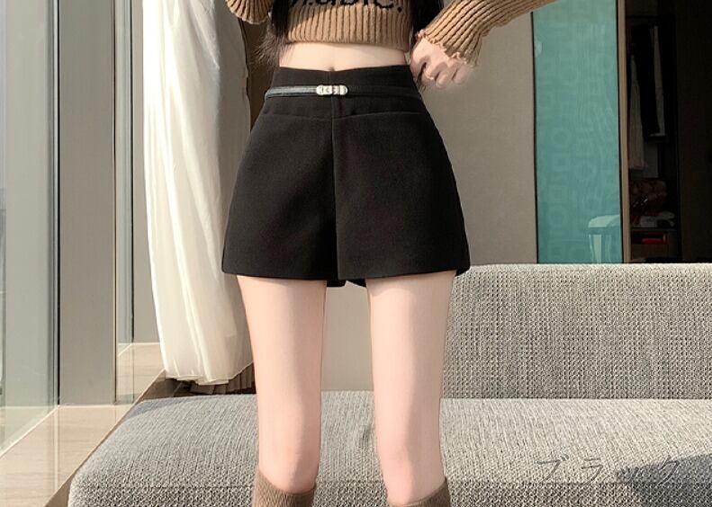 全2色 ショートパンツ ショーパン ハイウエスト 切り替え スリム 着痩せ シンプル