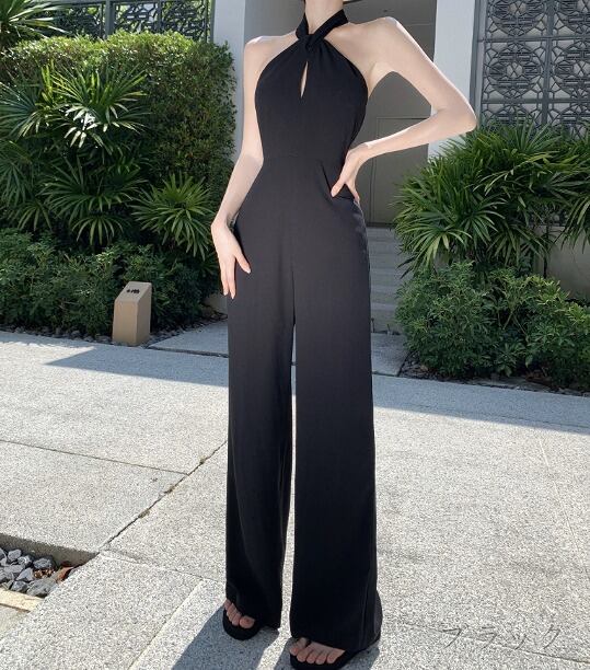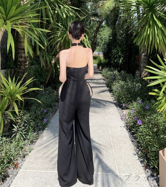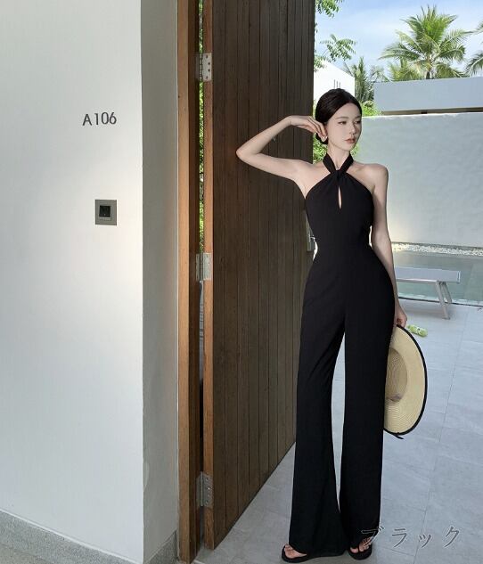 オールインワン オーバーオール ノースリーブ 切り替え スリム 着痩せ シンプル
