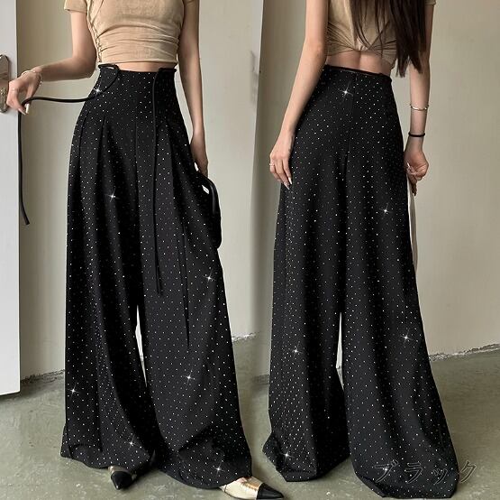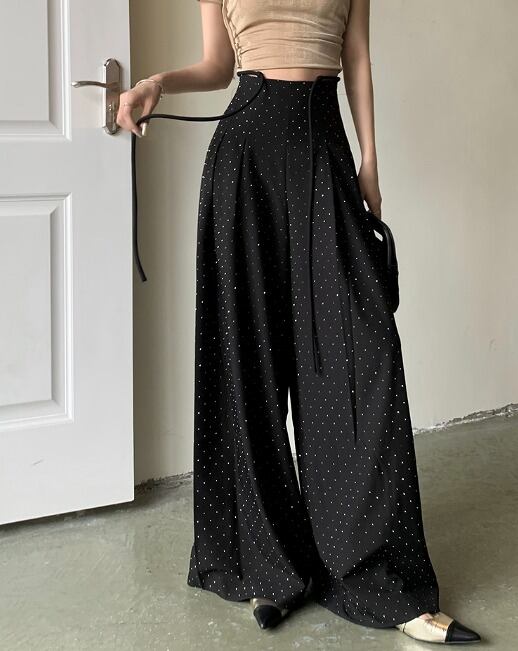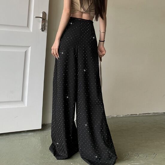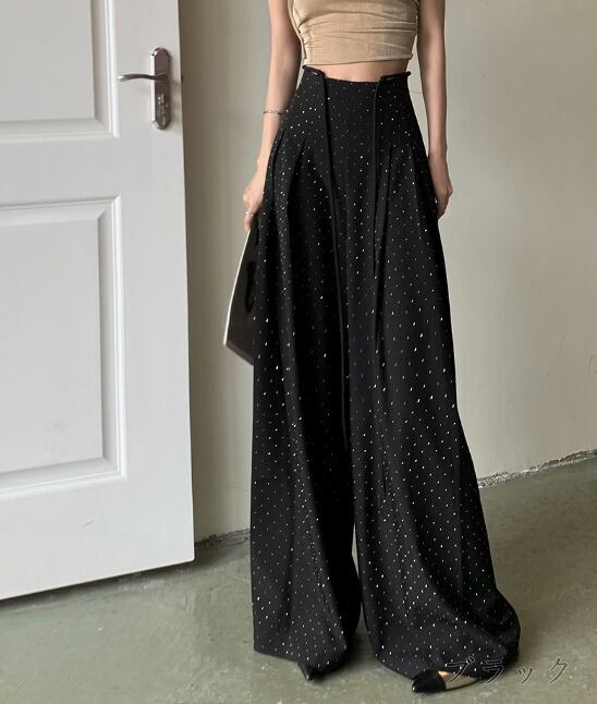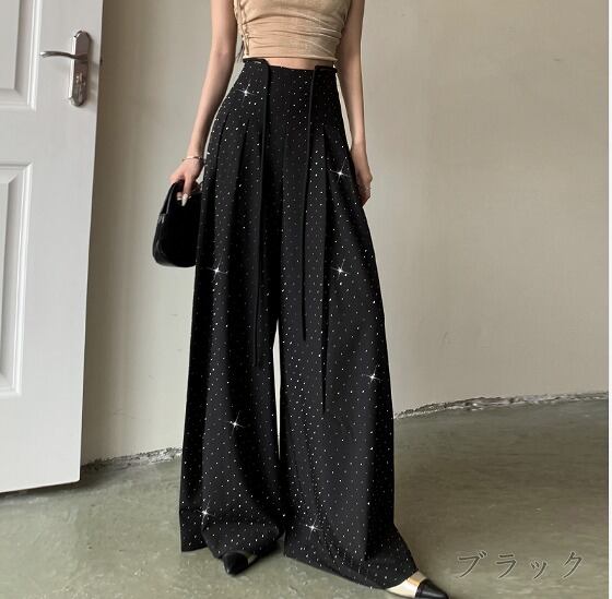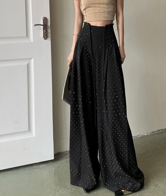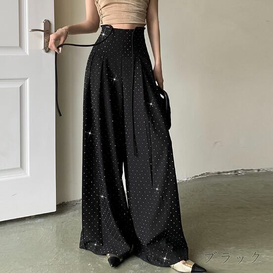 ワイド バギーパンツ ハイウエスト 切り替え 体型カバー 着痩せ シンプル