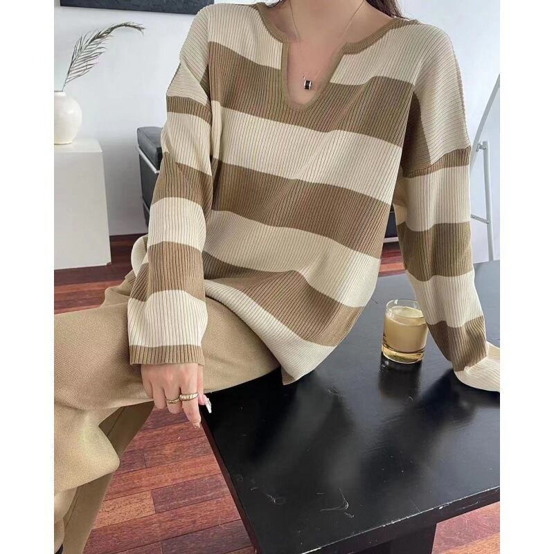 2026年秋冬新作 プルオーバー ニットトップス トップス Vネック レディース パンツ 上下セット