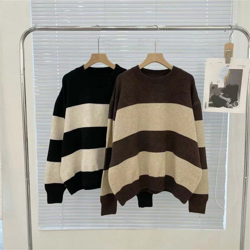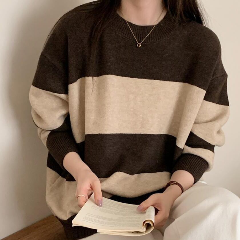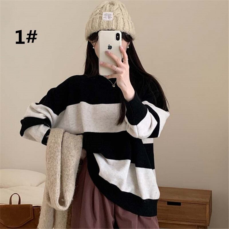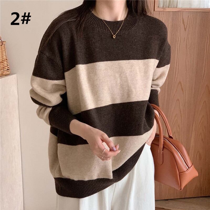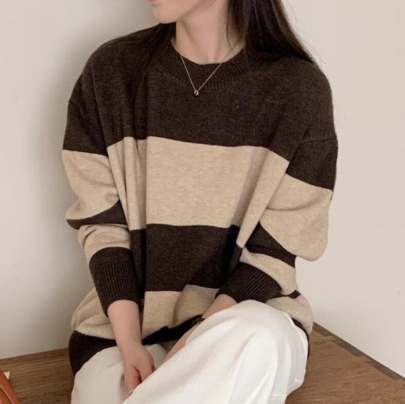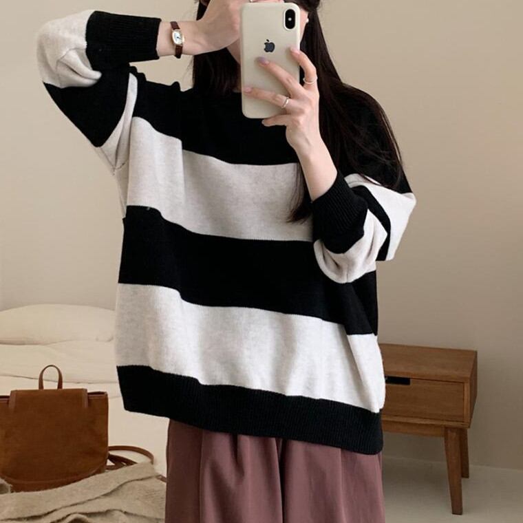 秋新作 プルオーバー セーター ニットトップス トップス レディース スボーダー柄 ゆったり カジュアル