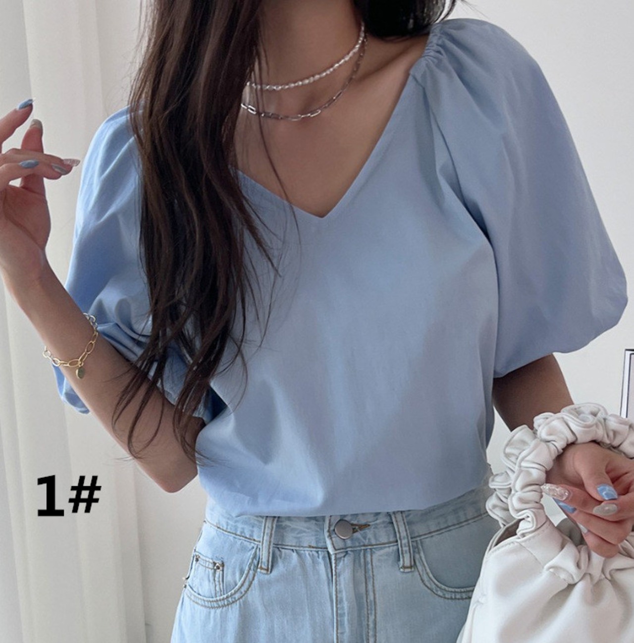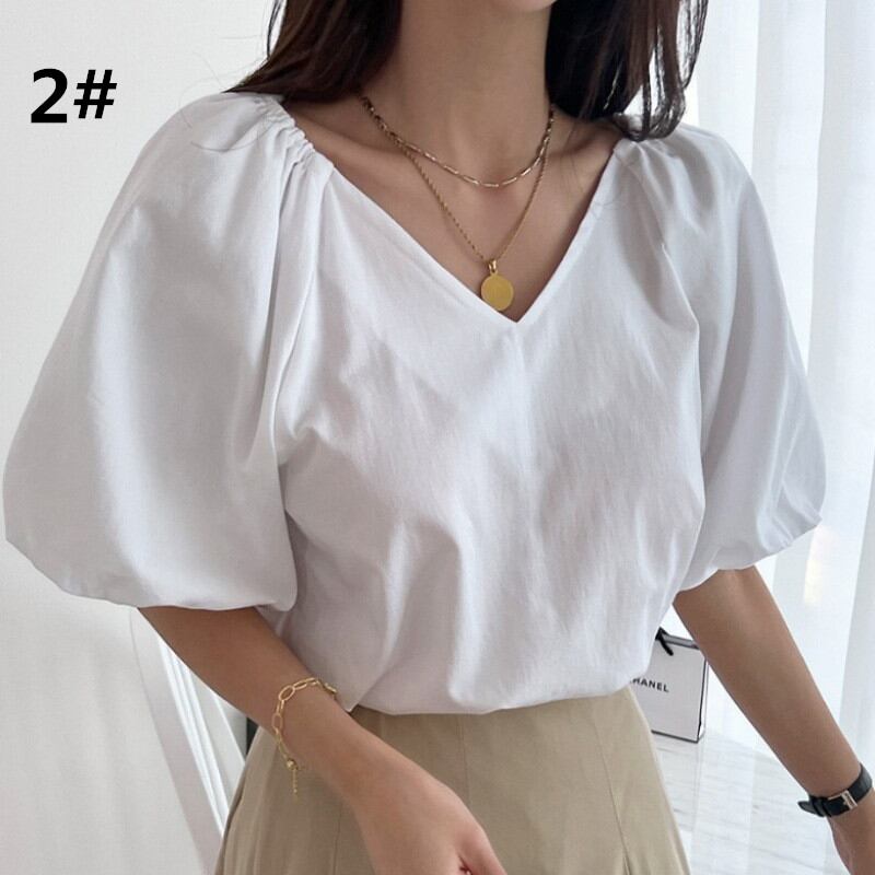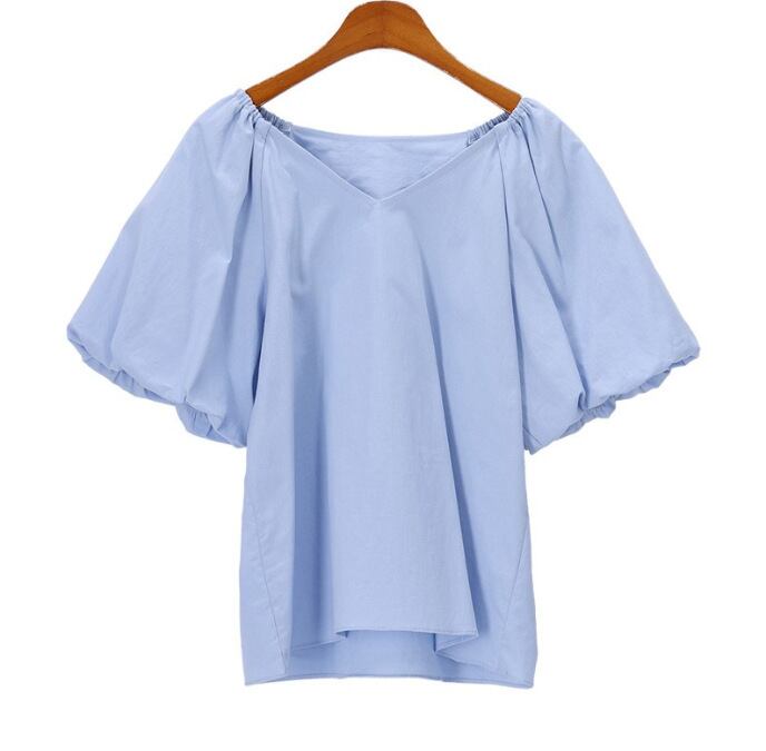 夏新作 ブラウス シャツ トップス レディース Vネック 半袖シャツ ランタンスリープ Sweet 可愛い