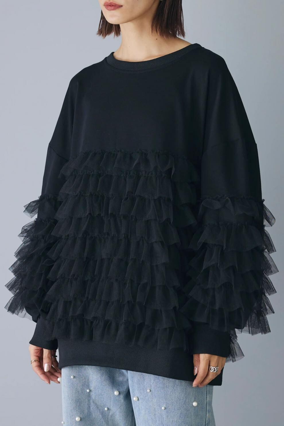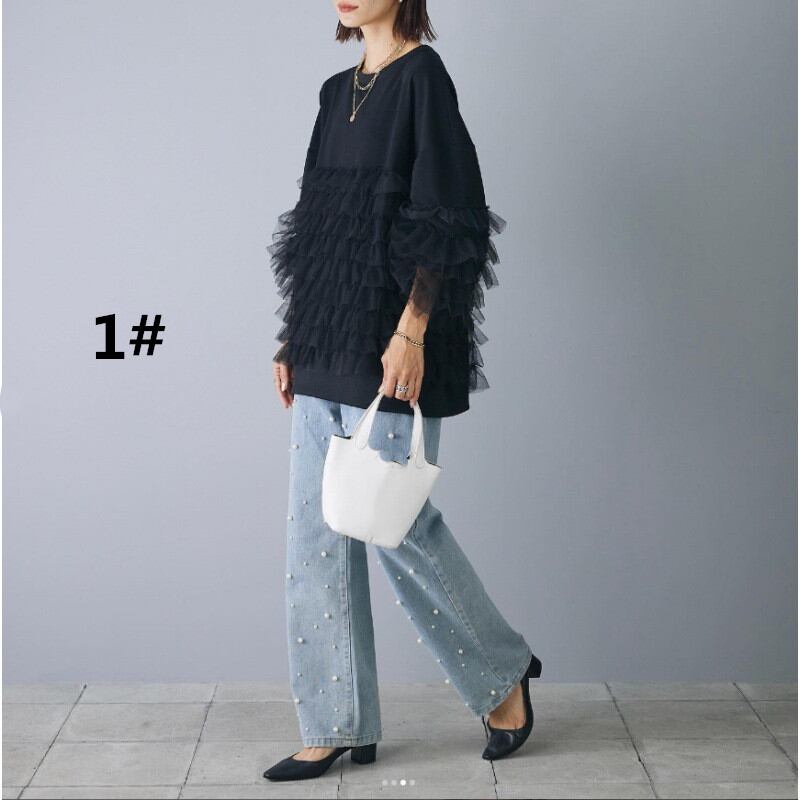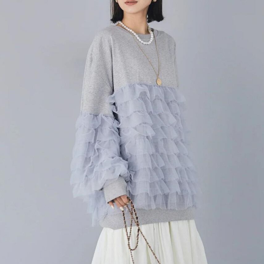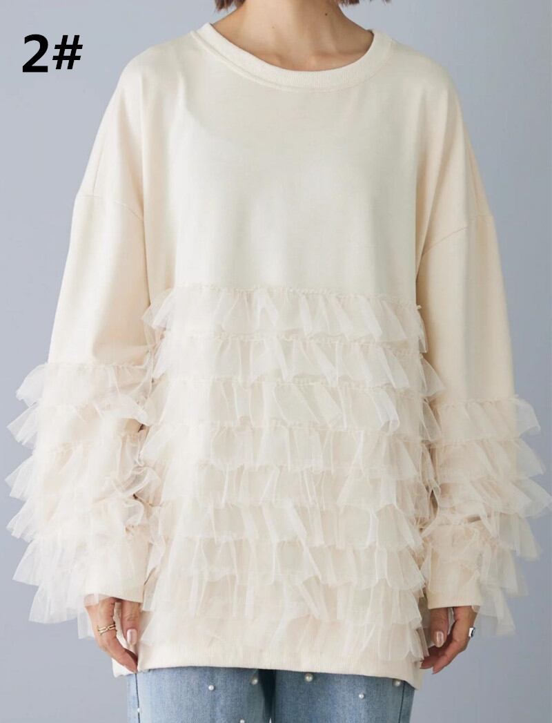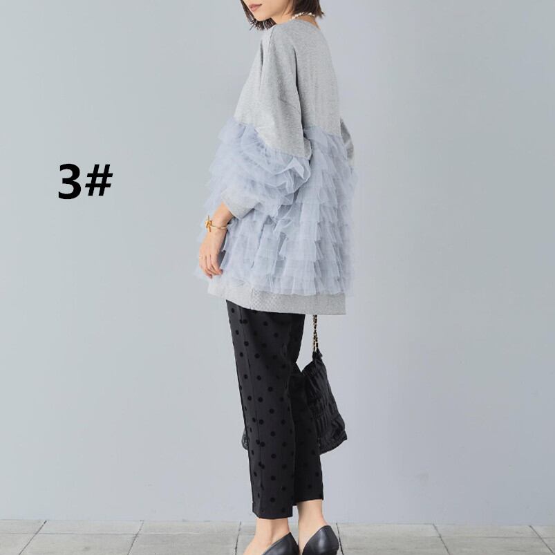 プルオーバー 2026年秋新作 トップス レディース ラウンドネック 異素材 メッシュ カジュアル 着回し