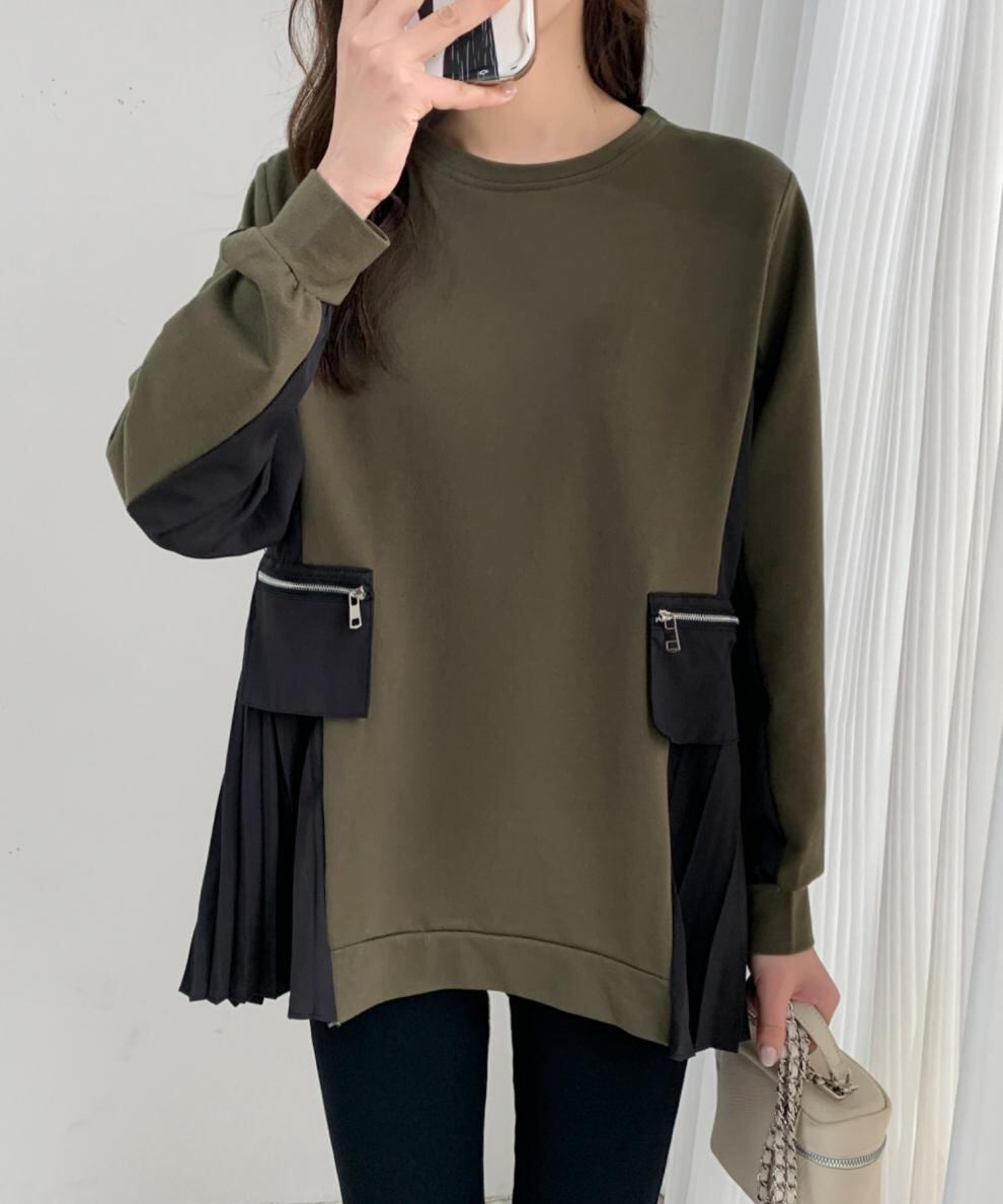 2026年秋新作 プルオーバー トップス レディース ラウンドネック 異素材 INS大人気 個性 カジュアル