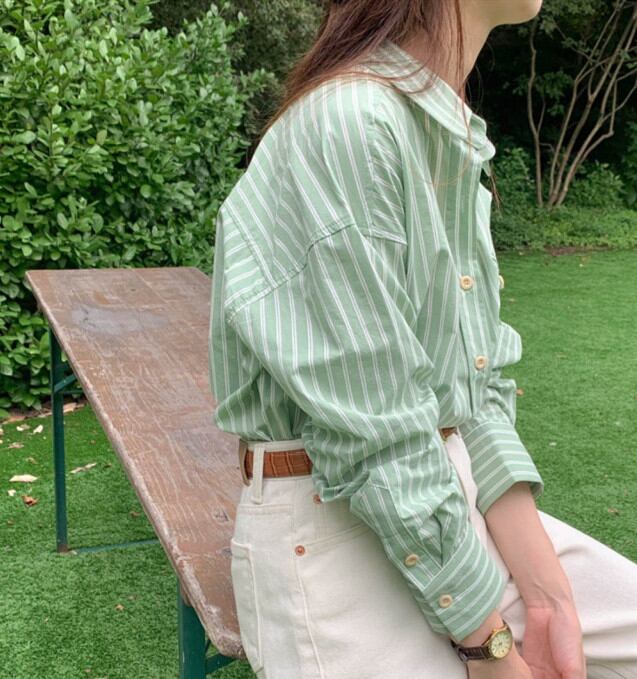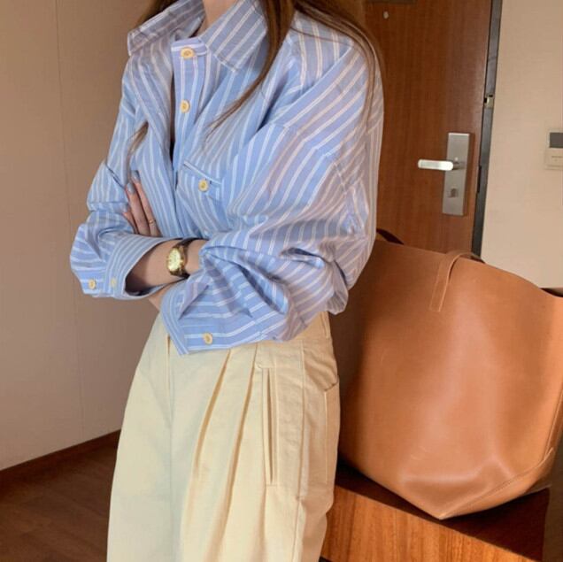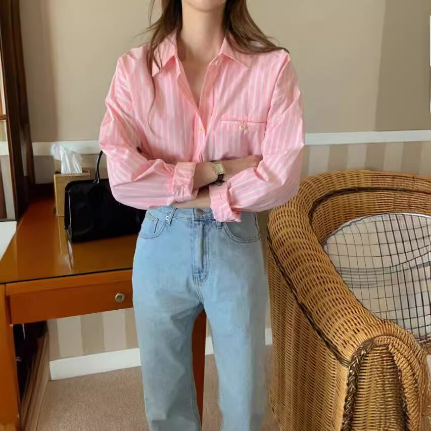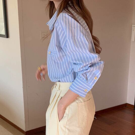 ブラウス シャツ 秋新作 長袖ブラウス レディース トップス ストライプ カジュアル 韓国風
