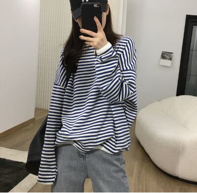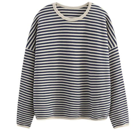 2024新作 レディース 長袖 トップス ストライプ スウェットシャツ 春秋 薄手 ルーズ