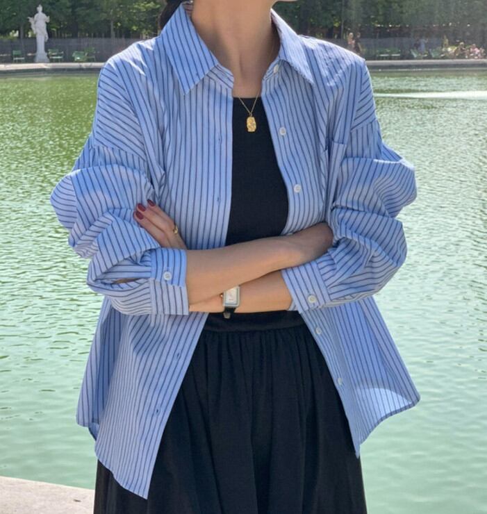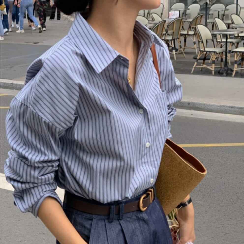 秋新作 ブラウス シャツ 長袖ブラウス レディース トップス ストライプ カジュアル 韓国風