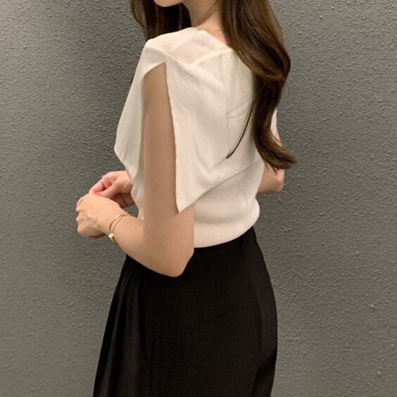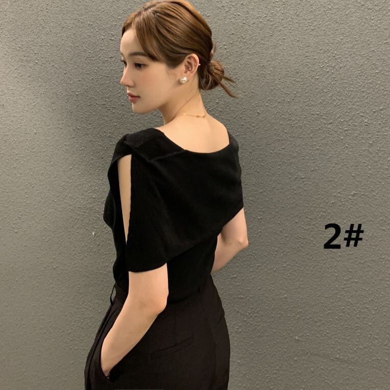 夏新作 tシャツ Tシャツ レディース トップス ラウンドネック ニットトップス ニット 気質 オシャレ