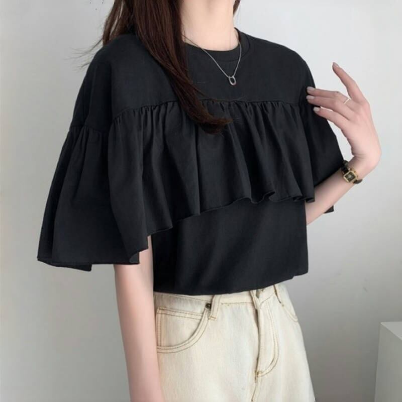 2026年夏新作 tシャツ Tシャツ レディース トップス ラウンドネック フレア カジュアル シンプル