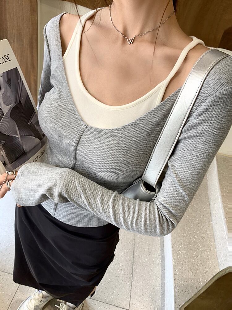 今季マストバイ 夏秋新作 気質 韓国系 カジュアル系 おしゃれ トップス 偽2枚 長袖シャツ