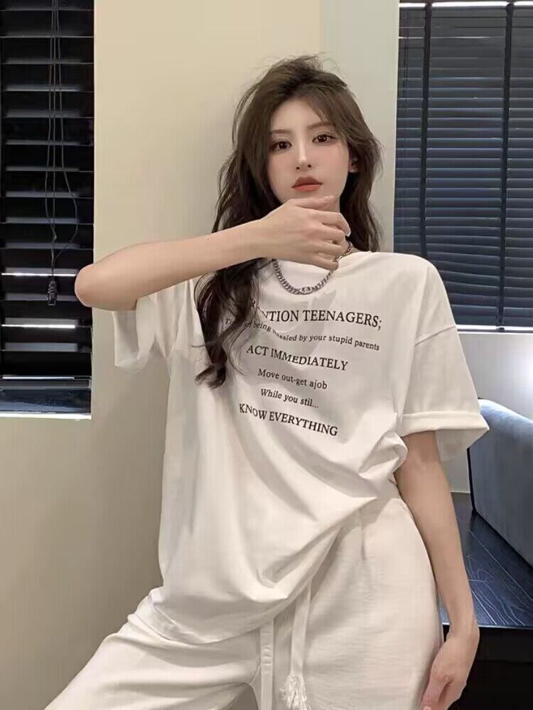 2026年夏新作 tシャツ Tシャツ レディース トップス ラウンドネック 英字ロゴ カジュアル