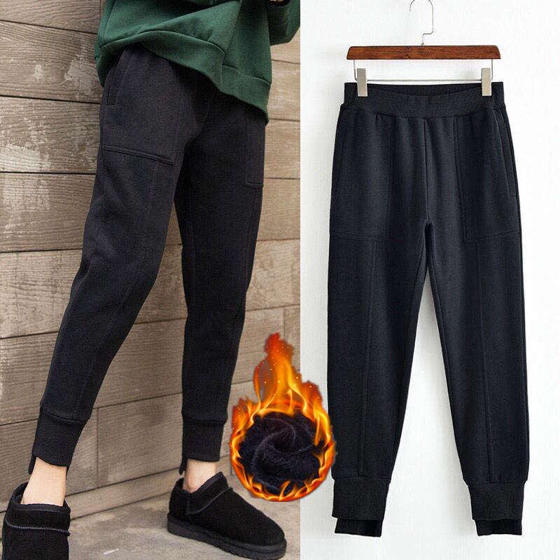 ベルベット運動衛ズボン女性は冬に保温カジュアルズボンを厚くしてやせたハーレムズボンの潮が見える