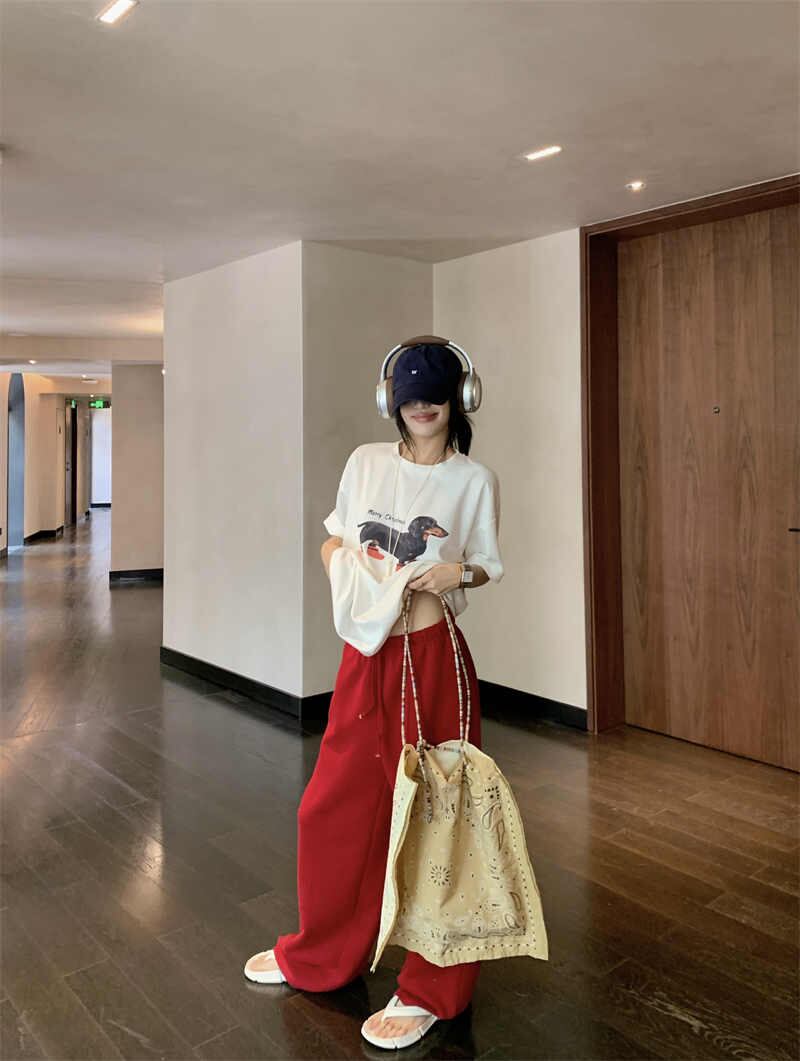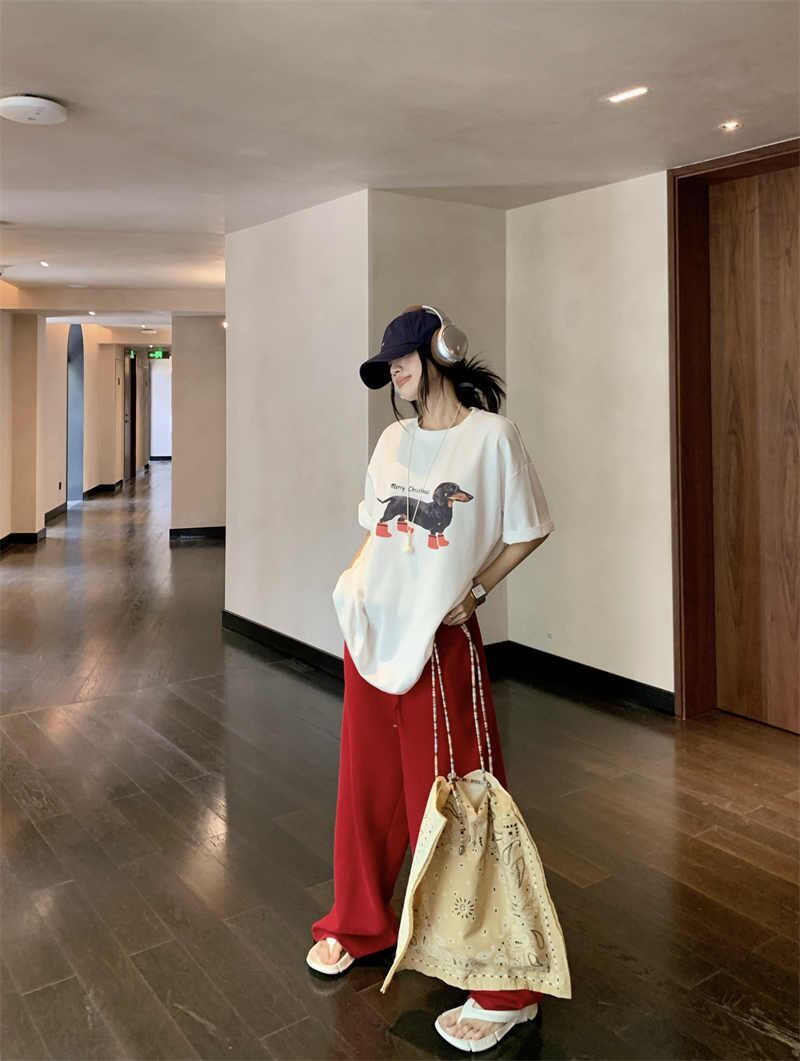 今季マストバイ INS 新作 おしゃれ カジュアル系 気質 個性的 ブラウス+赤い ズボン